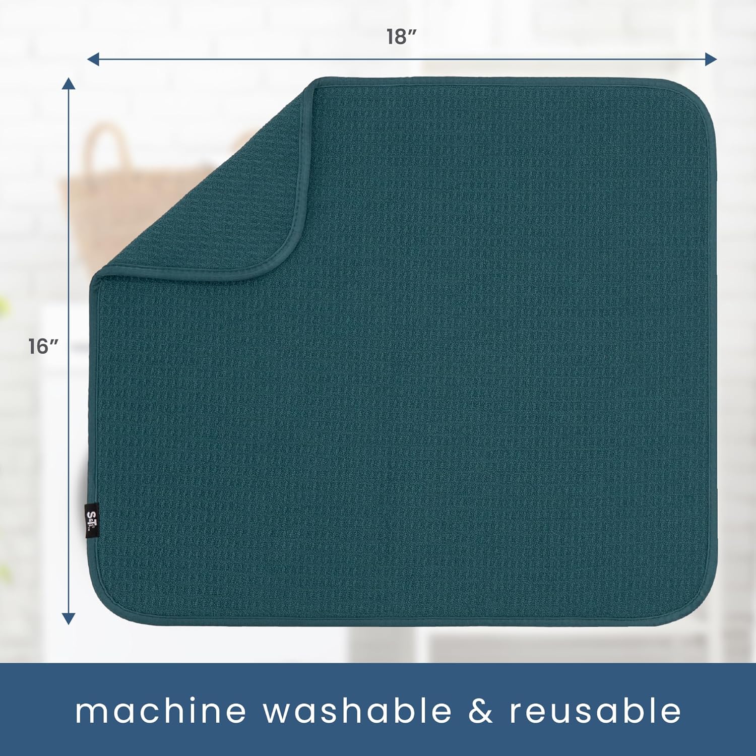 - One S&T INC. Microfiber Dish Dry Mat measuring 16 in. x 18 in.; kitchen mat for countertop absorbs up to 4 times its weight in water to keep your countertop dry, unlike a silicone dish drying mat