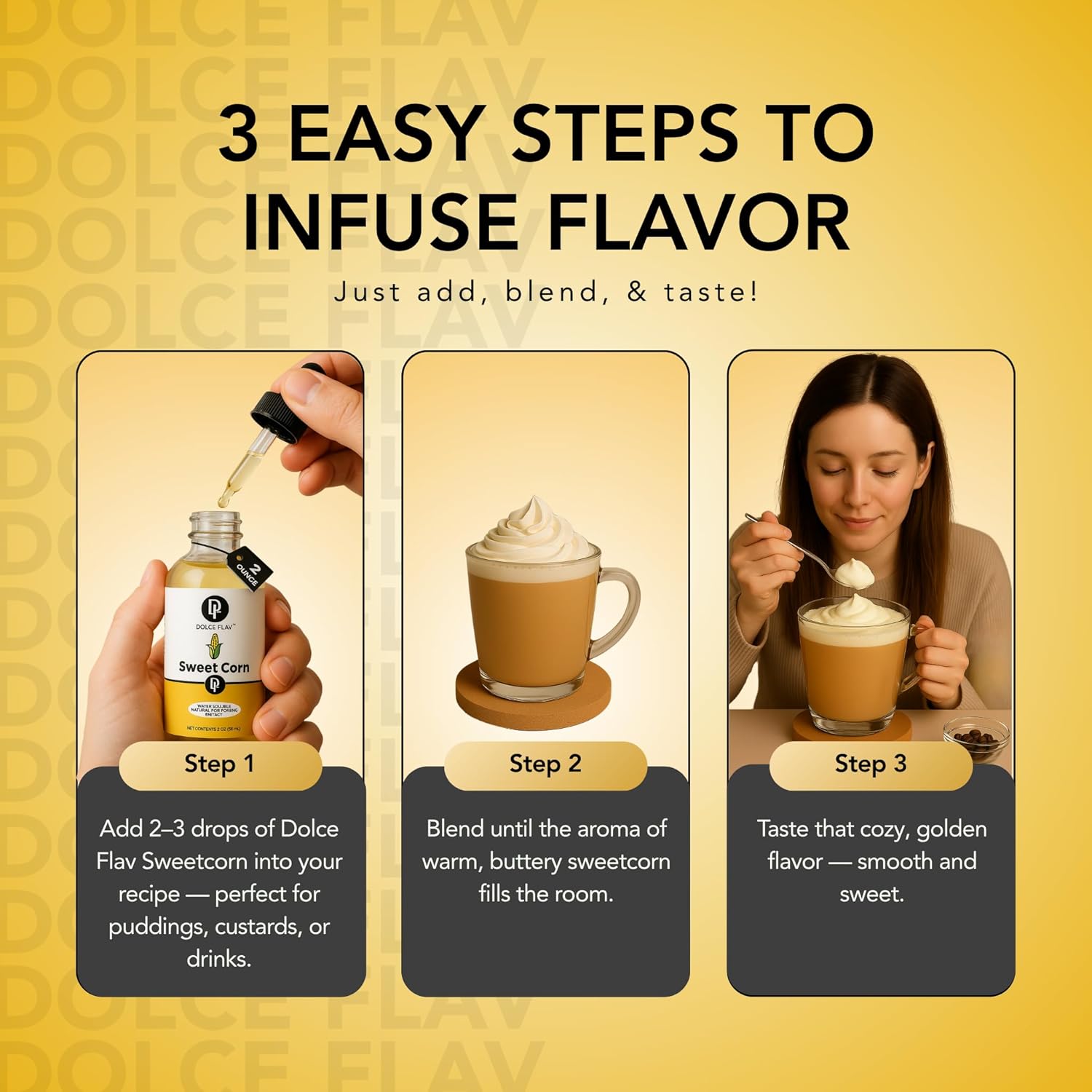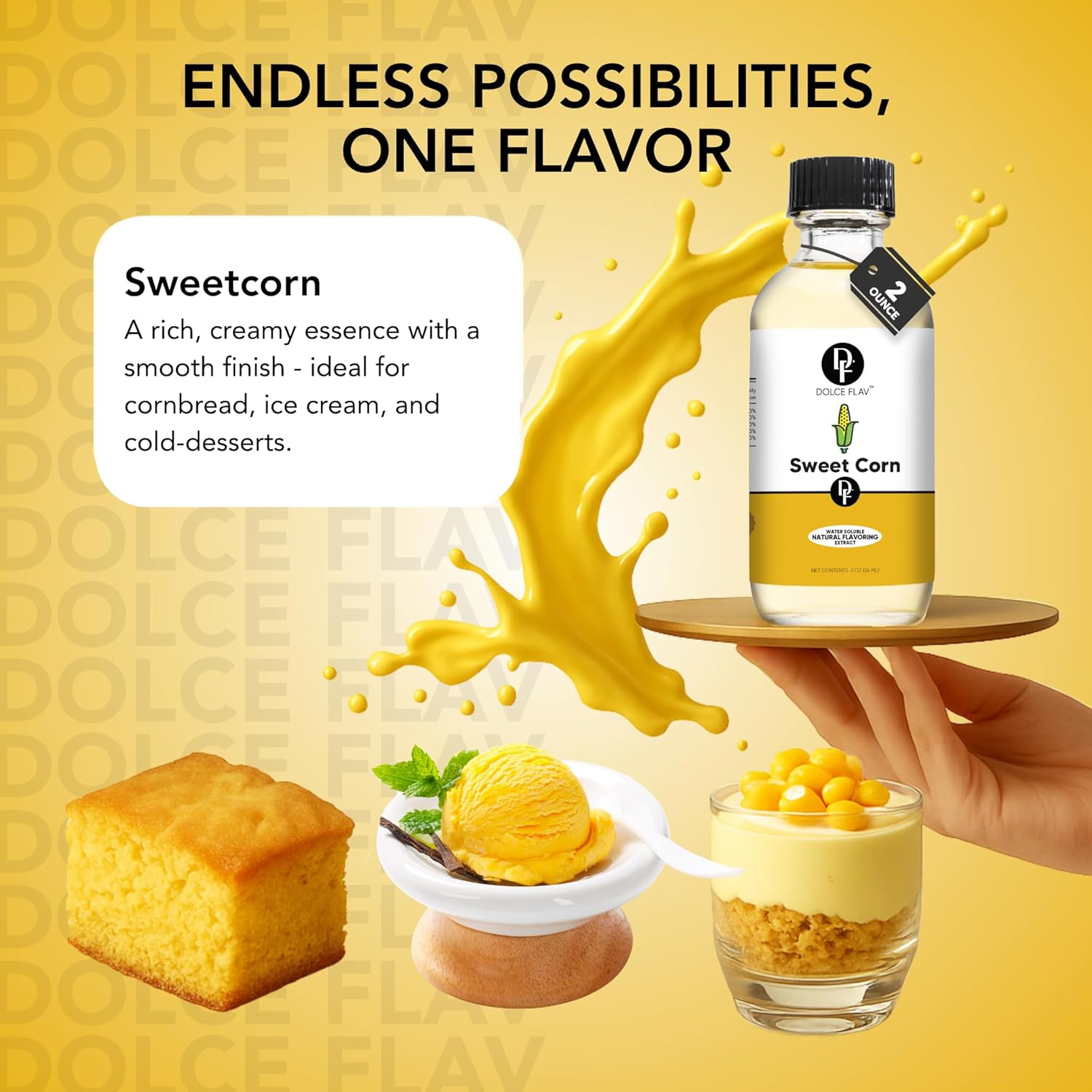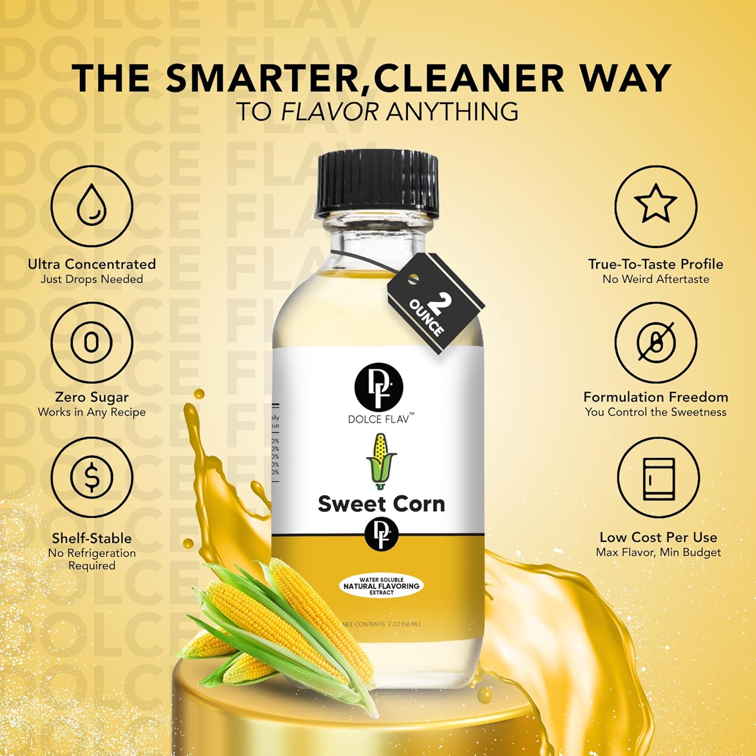 - Sweet Corn Extract for Culinary Creativity: Enhance your cooking and baking with our sweet corn flavoring extract. Ideal for introducing a genuine, garden-fresh corn flavor, this essential ingredient infuses a natural sweet corn essence into everything from savory breads to innovative salads. Perfect for crafting unique dishes like low carb cornbread and sugar-free corn puddings.