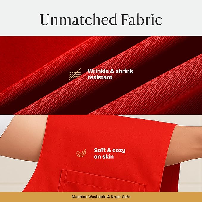 - Ultimate Convenience. Our kitchen apron features dual front pockets to make your culinary adventures a breeze. Store all your cooking essentials, from utensils and recipe cards to your phone and towel.