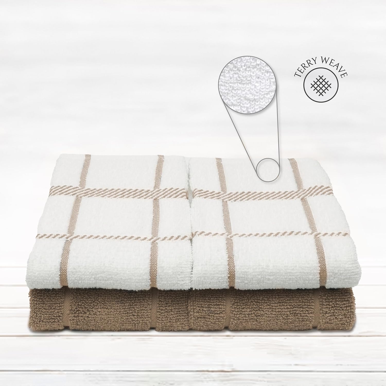 100% Cotton Terry Dish Towels, 4 pack16 x26 Inches, Super Soft and Absorbent Kitchen Towels, Perfect for Kitchen Cleaning and Dish Washing | Tan