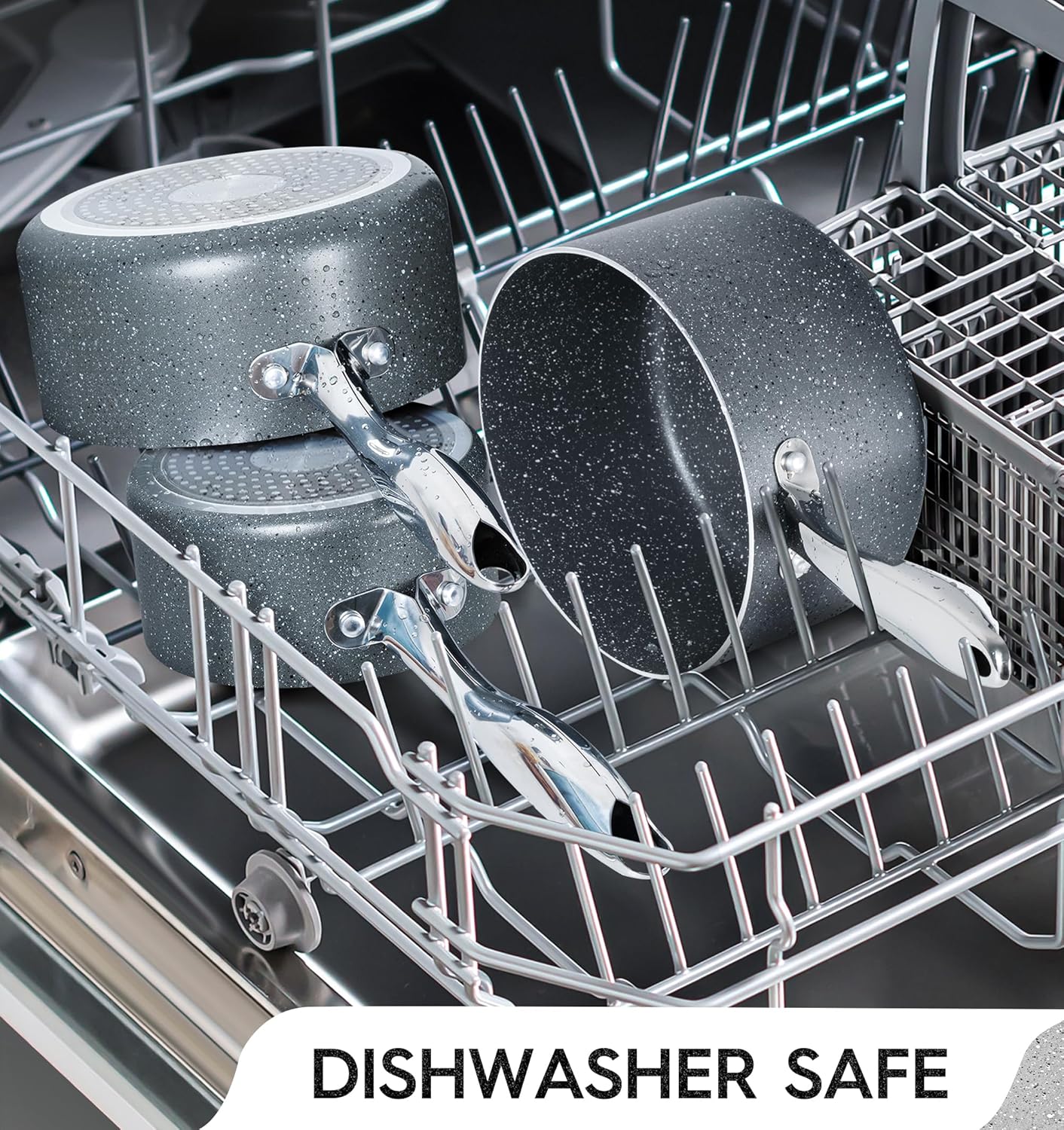 - ULTRA NONSTICK - The granite coating on these sauce pans prevent food from sticking, making it easy to clean and ensuring that your food comes out perfectly cooked every time.