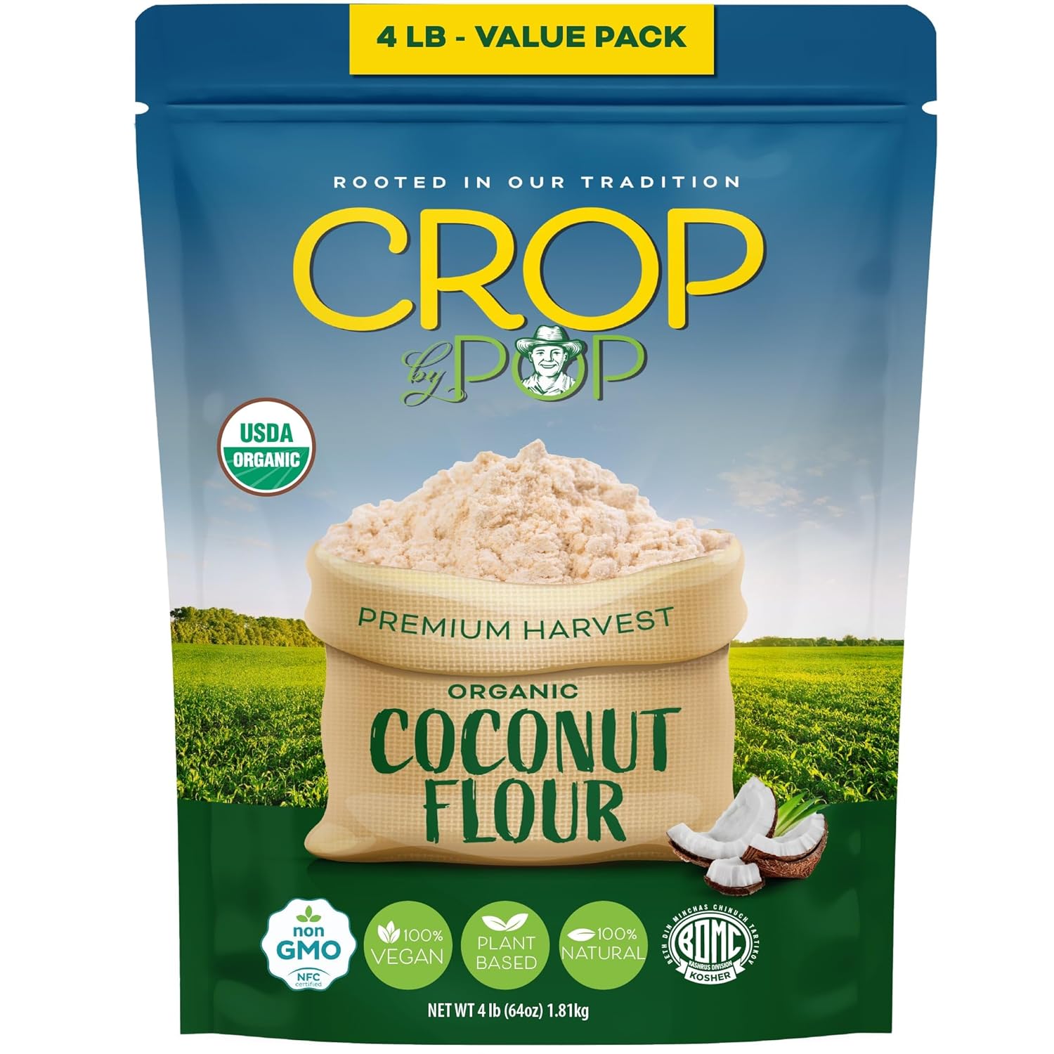 CROP BY POP - Organic Coconut Flour (64 Oz - 4 LB) Packed Fresh in Resealable Bag - USDA Organic, Non GMO - Naturally Grown, Vegan, Kosher