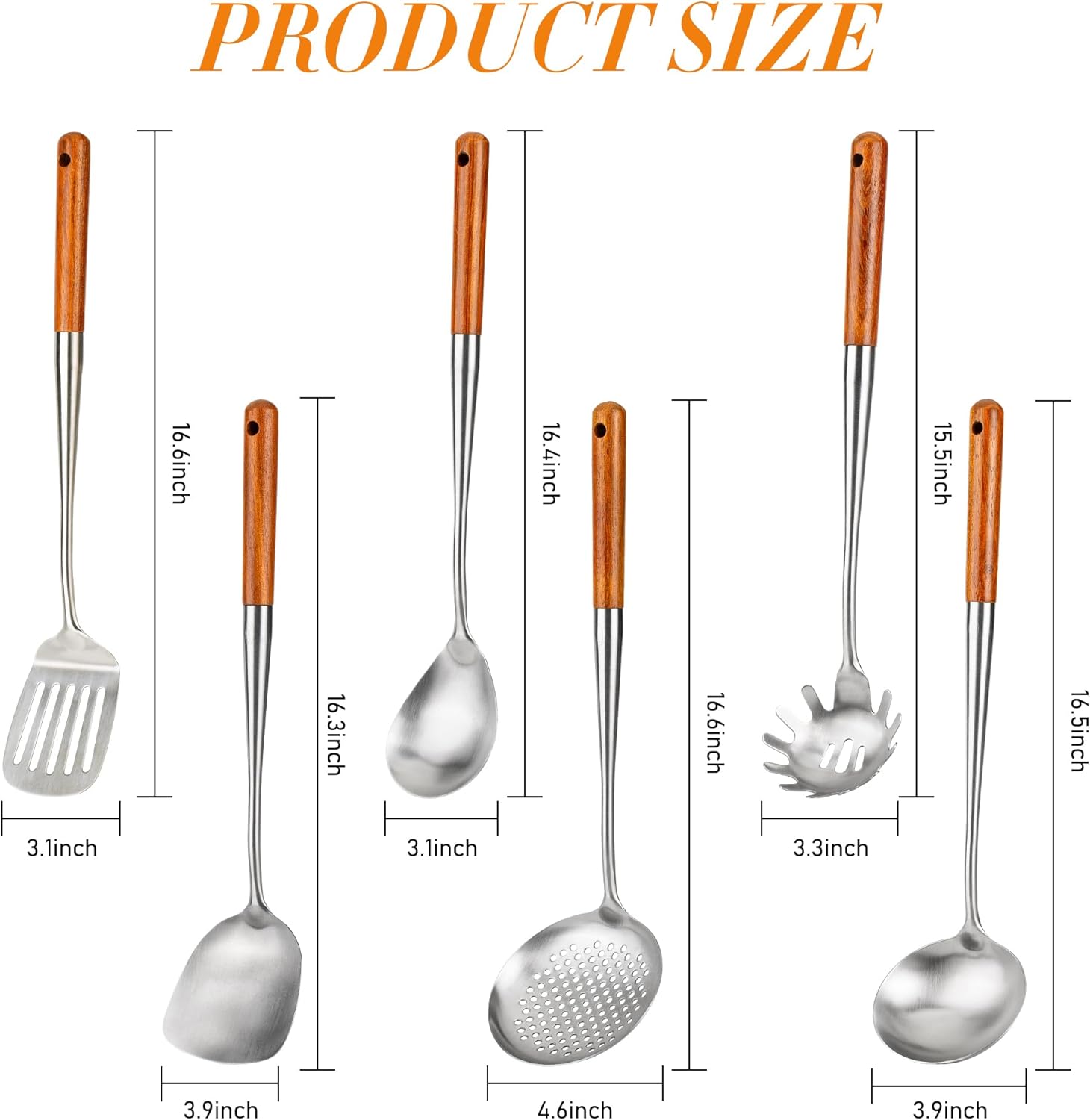 - Design of the Kitchenware Set: the wooden handle is ergonomic, the stainless steel is durable and heat-resistant,and the appearance is classic. Specially designed for cooking food, it can be easily turned and cooked to help you make delicious dishes