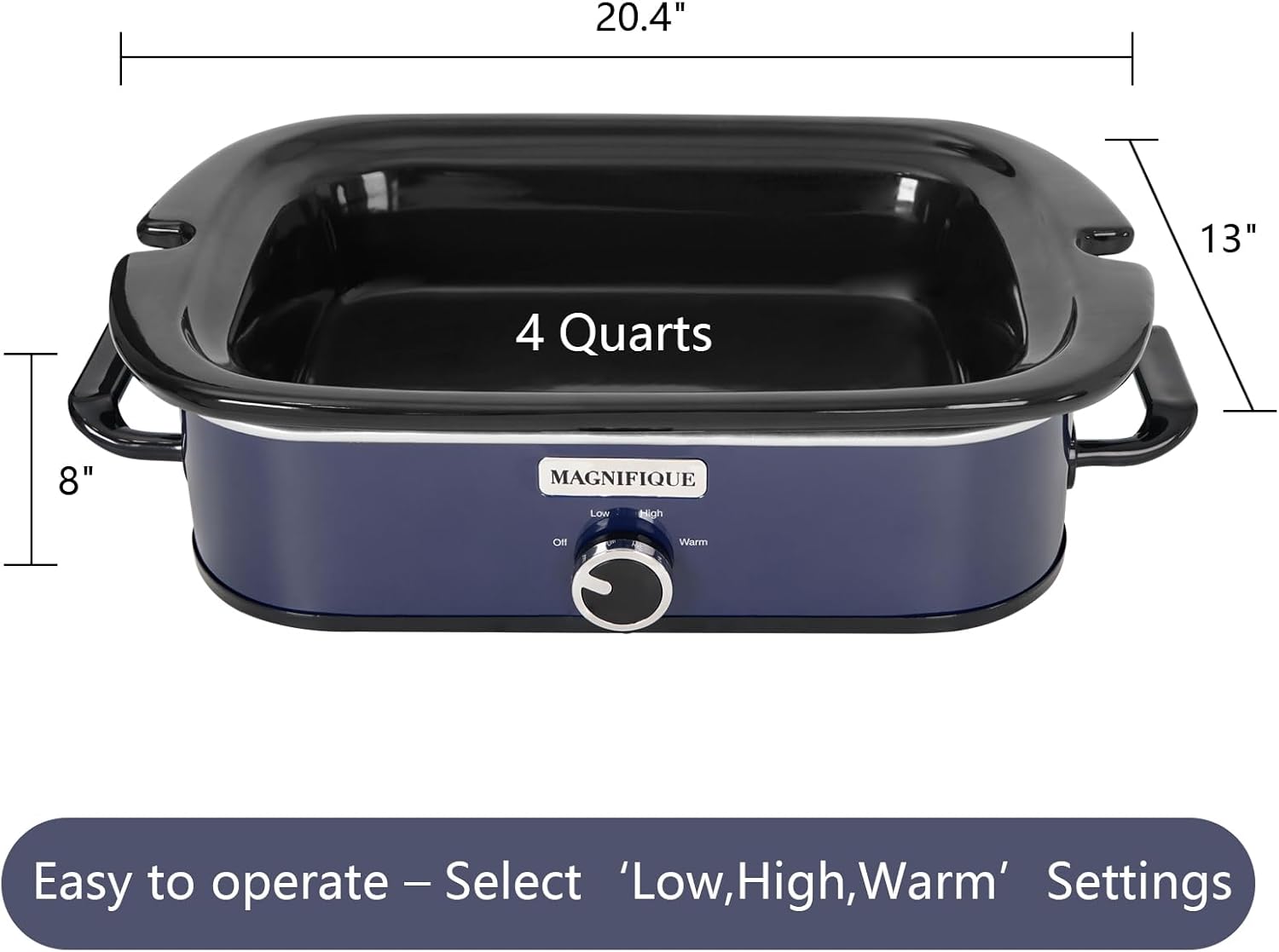 4-Quart Slow Cooker with Casserole Manual Warm Setting - Perfect Kitchen Small Appliance for Family Dinners, Dishwasher Safe Crock, Blue