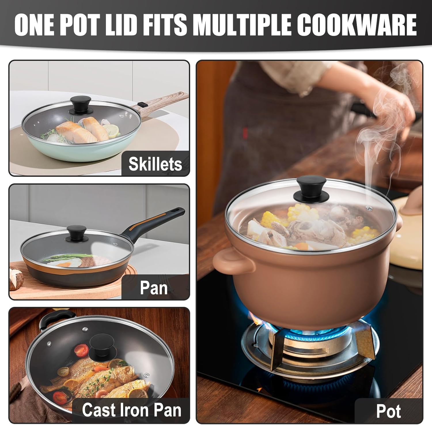 - METAL VENT HOLE FOR SAFE COOKING: This pan cover includes a metal vent to release excess steam and prevent spillovers.Whether you're stewing, baking, or poaching, you can rely on this glass lid for a hassle-free cooking experience.