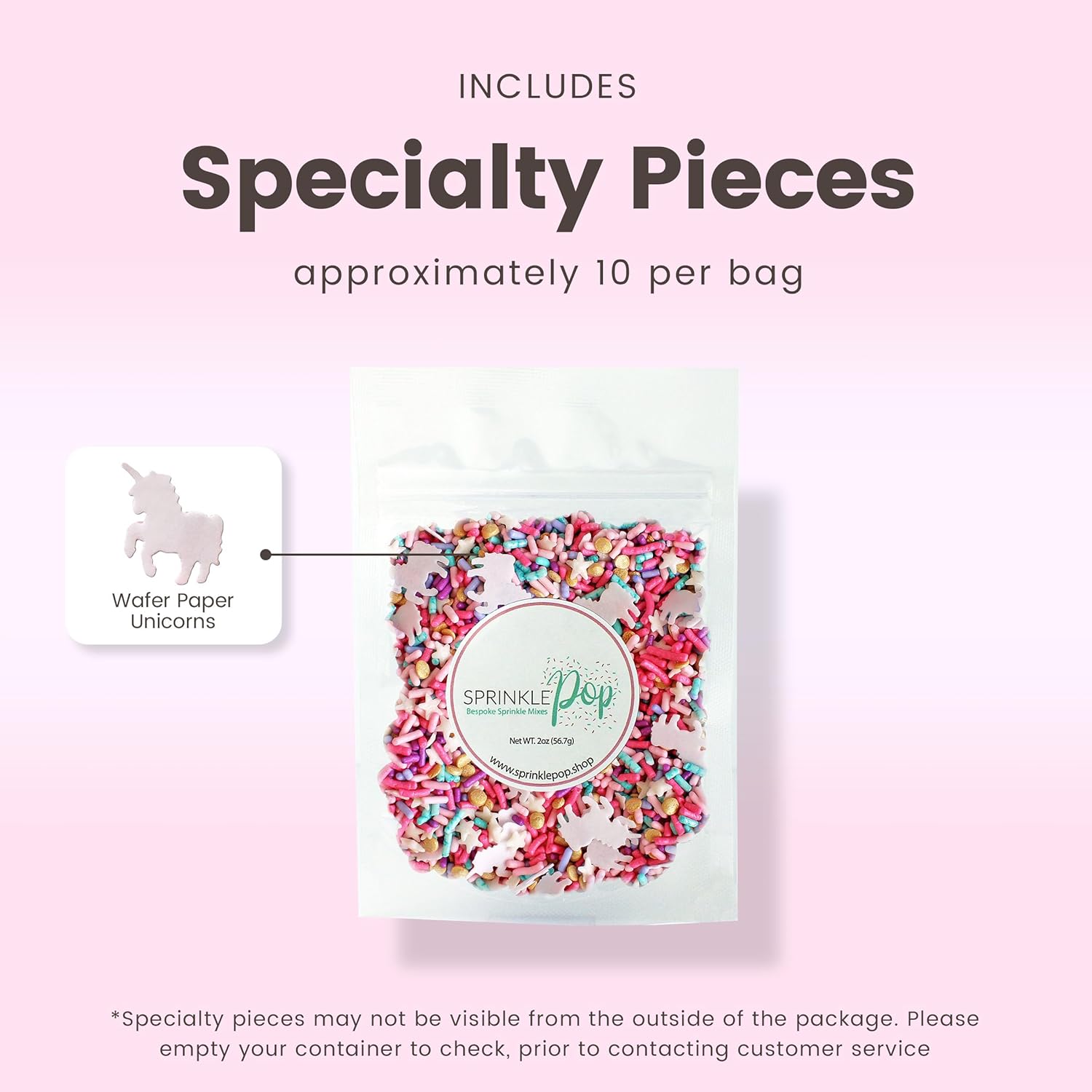 Sprinkle Pop Party Like A Unicorn Sprinkle Mix| Rainbow Sprinkles Heavy on Pink Gold Jimmies with ~10 Unicorn Wafer Papers| Birthday Sprinkles Made in USA for Decorating Cake Cupcakes Cookie, 2oz