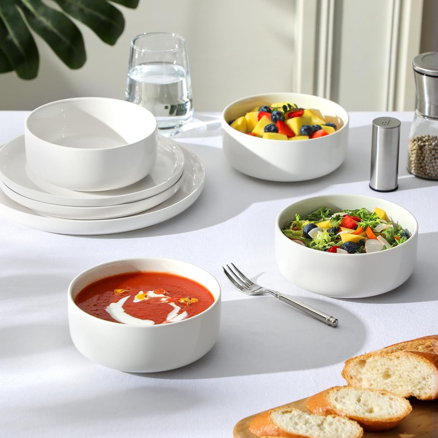 - 【SET OF 4 BOWLS】Indulge in our LUNA Series 5.8-inch wide x 2.3-inch high cereal bowls, boasting a generous 24 oz capacity with substantial 0.98 lb (443g) weight per bowl. Crafted from premium ivory white porcelain in a timeless round shape, these weight-balanced bowls offer perfect stability while maintaining elegant proportions, adding both sophistication and functionality to any table setting