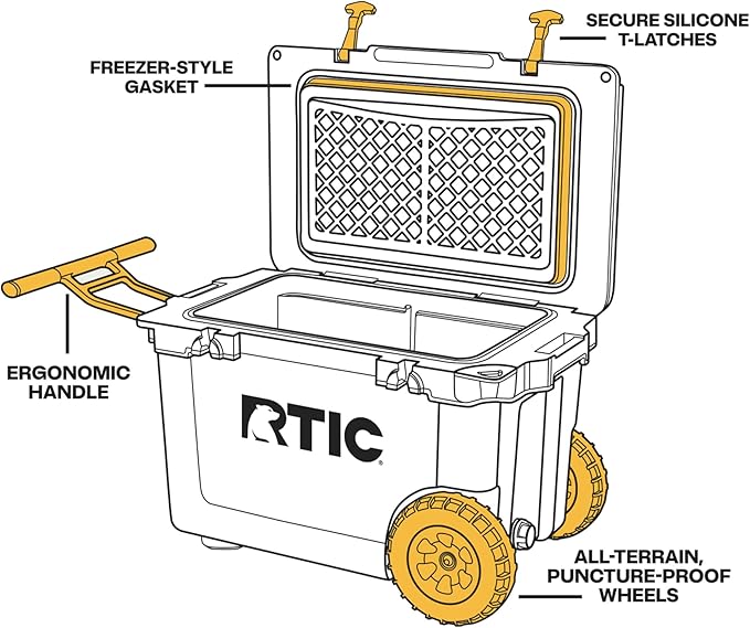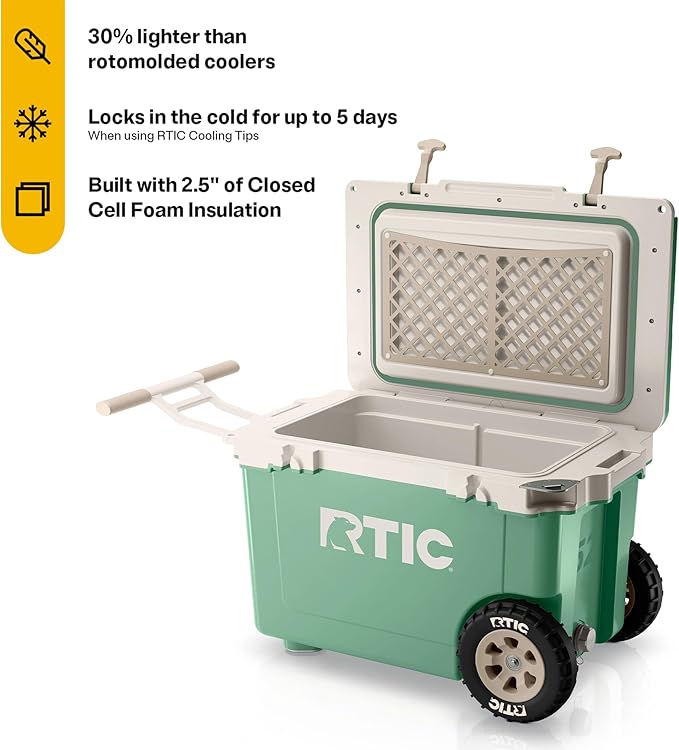 - ALL-TERRAIN WHEELED COOLER – Venture into the great outdoors with confidence, equipped with the RTIC Ultra-Light insulated cooler with wheels, equipped with puncture-resistant, all-terrain wheels to effortlessly traverse through rough terrains.