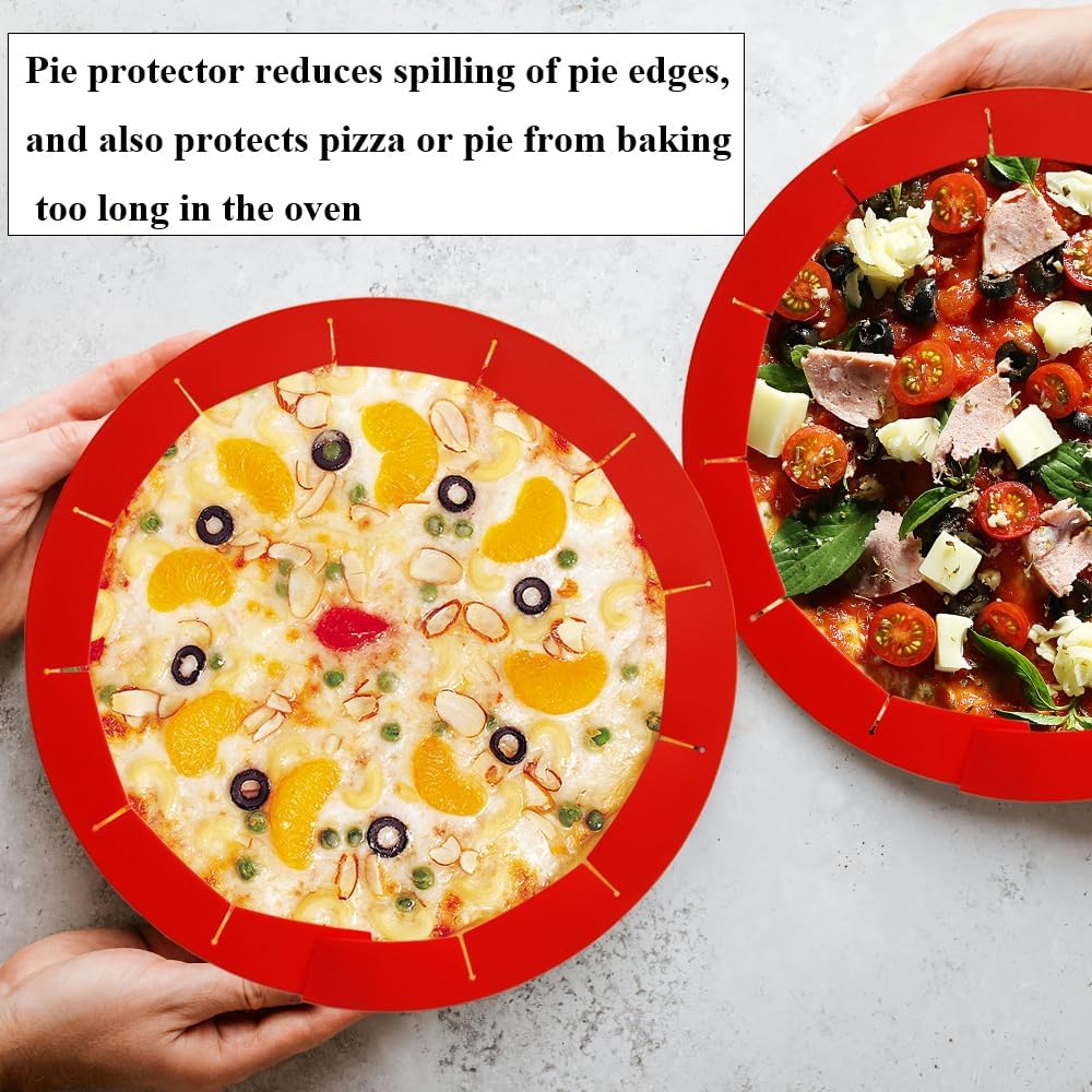 - Heat Resistant Pie Rings for Crust Adjustable: The silicone pie protector can resist heat up to 450 °F which can be perfectly used at extremely high cooking temperatures. The kitchen silicone protector can be adjusted in size to fit 8 inches to 11.4 inches pie or pizza