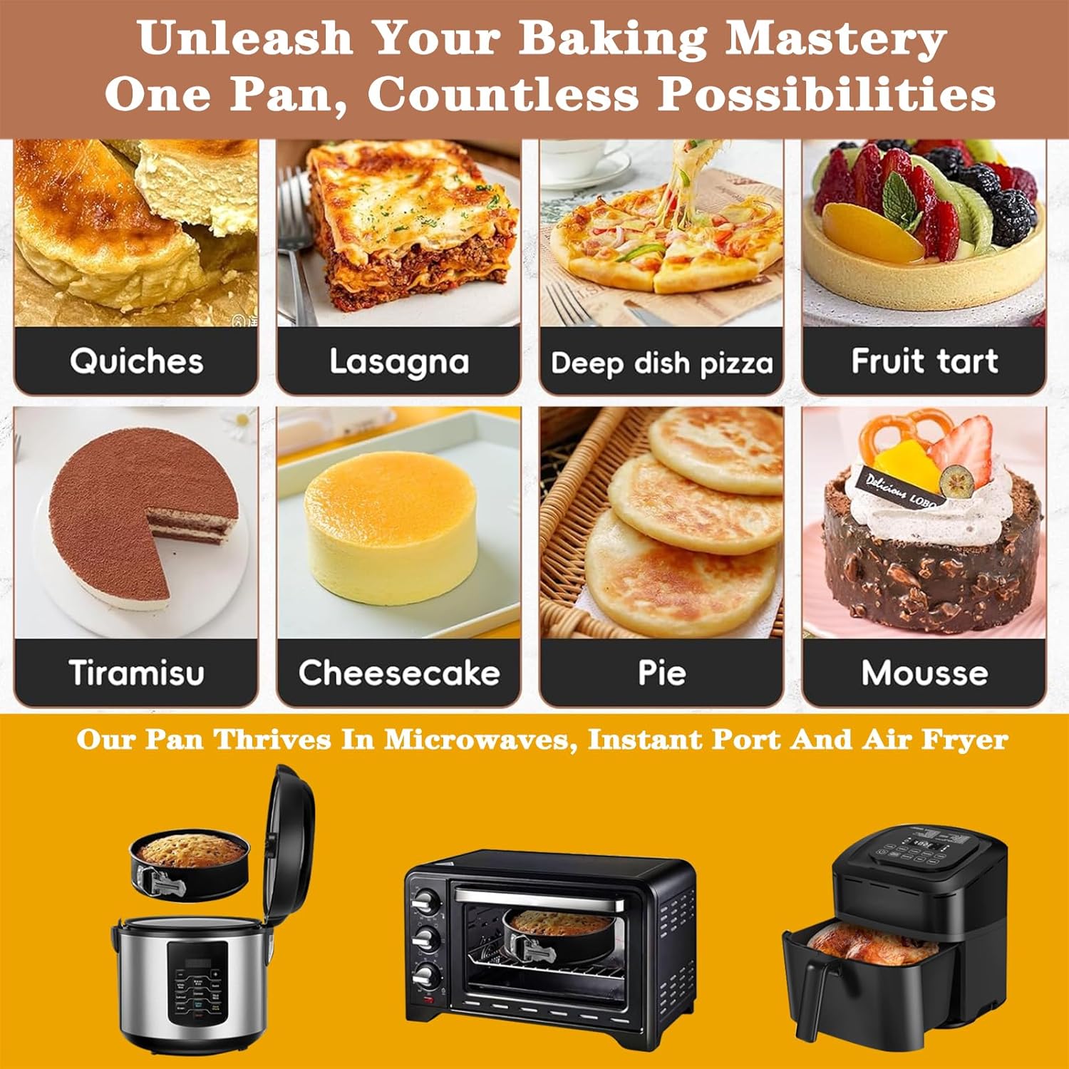 - 🍰【Multifunction Use】: Springform pans works perfectly in instant pot and oven, heat-resistance temperature: 445℉ (230℃), choose soft tools when you clean the cake pan to protect non-stick coating, avoid sharp and rough tools to scratch the cheesecake pan. Hand washing recommended.