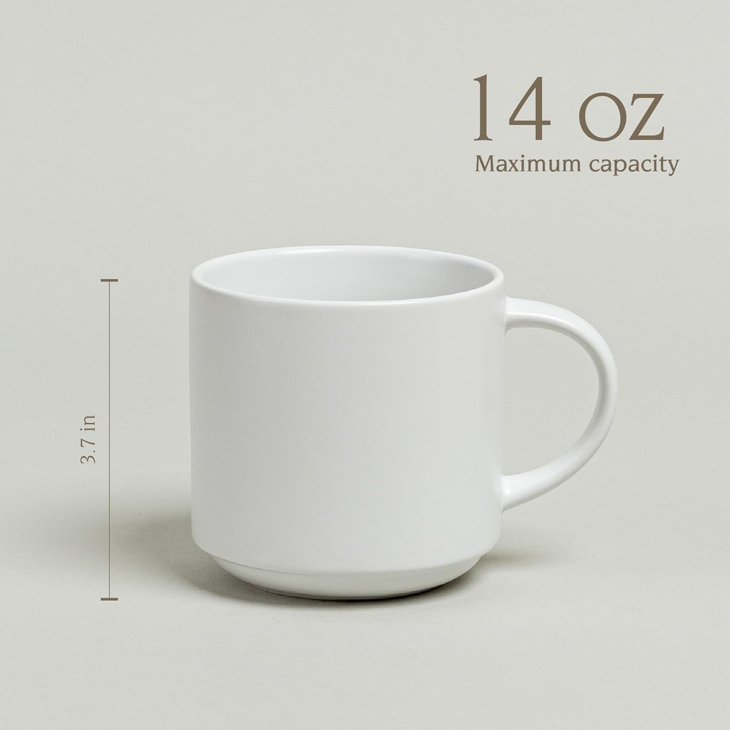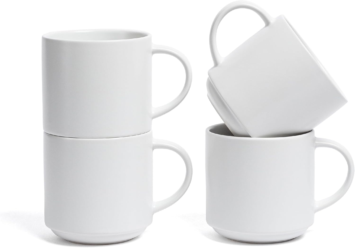 - Stylish & Functional Stoneware Mug Set – Crafted from high-quality stoneware, this coffee mugs set of 4 is perfect for daily use or casual entertaining. The semi-matte white finish adds elegant contrast to any kitchen, while the stackable coffee mugs design saves precious shelf space. These 14 oz coffee mugs blend modern style with timeless charm—perfect for tea, latte, or your favorite morning brew. Upgrade your drinkware game instantly.
