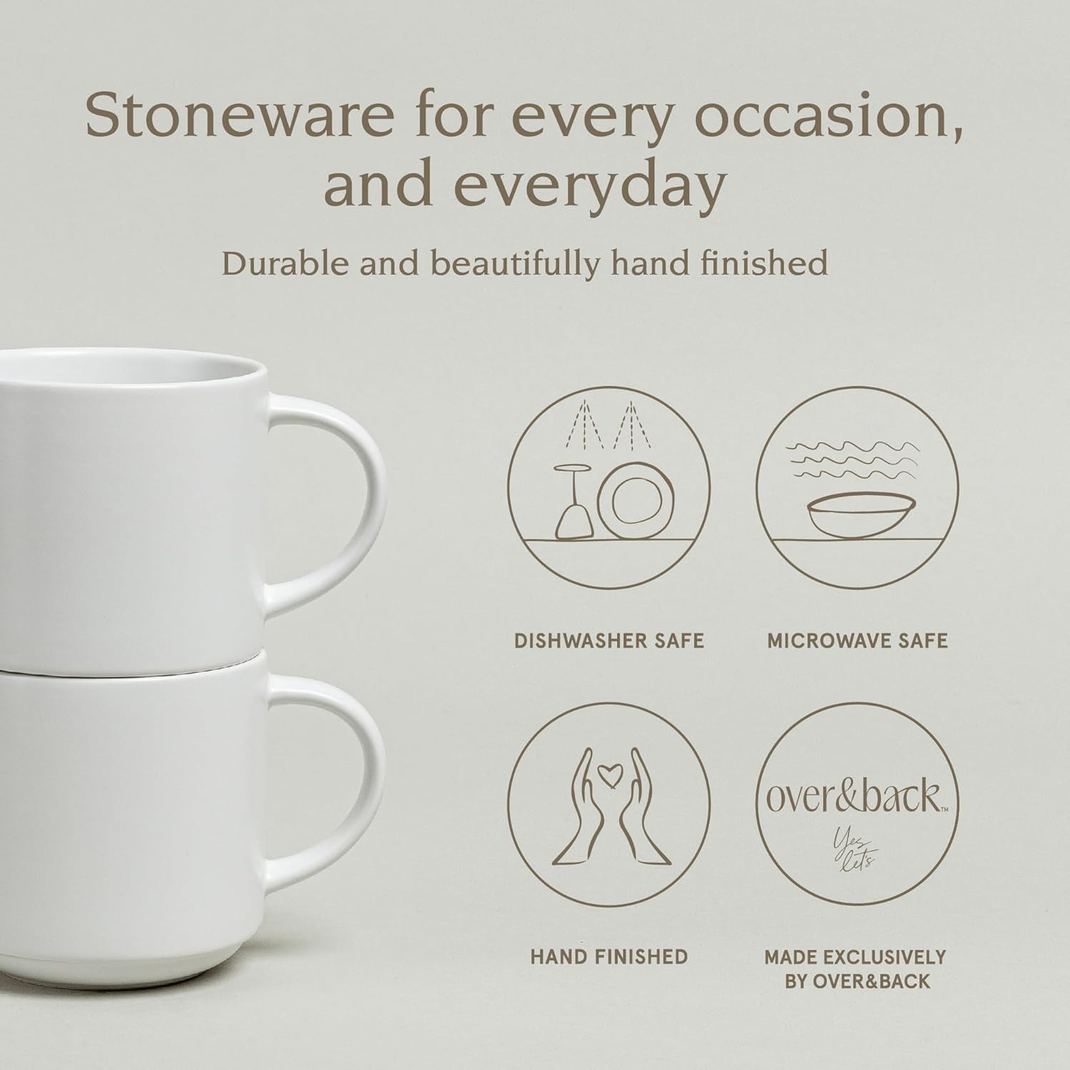 - Elevate Your Table with over&back – Mix, match, and make it yours. Our white coffee mugs and ceramic mugs offer the perfect canvas for your tablescape. Pair with matching bowls, plates, and linens for a cohesive aesthetic. From weekend brunches to elegant dinner parties, these versatile drinkware essentials work for every occasion. over&back makes stylish, effortless entertaining your new everyday standard.