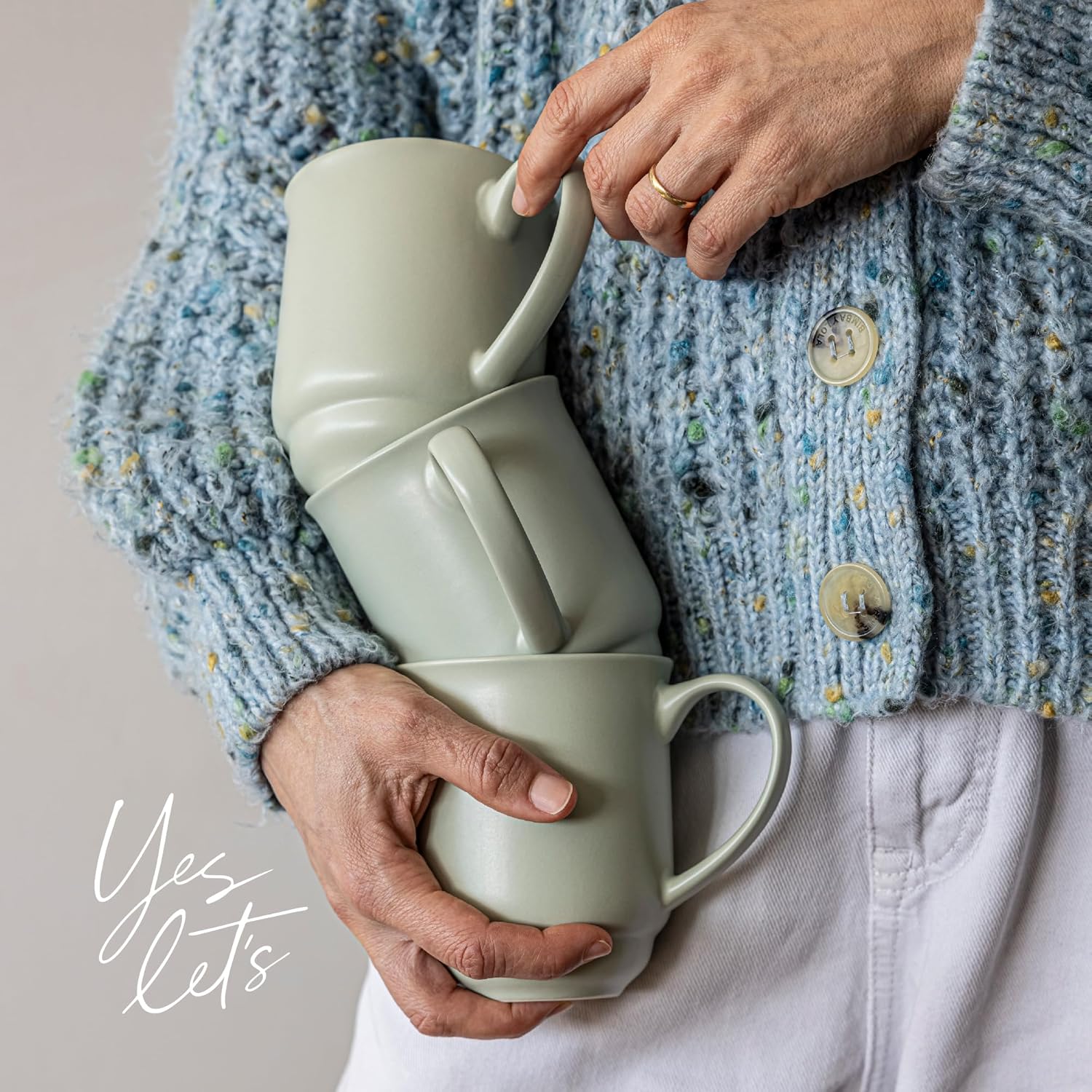 over&back Rim Stoneware Coffee Mugs - 4-Piece Mug Set - Enjoy the Perfect Cup of Coffee, Tea, Latte, and More - Semi-Matte Sage - 16oz
