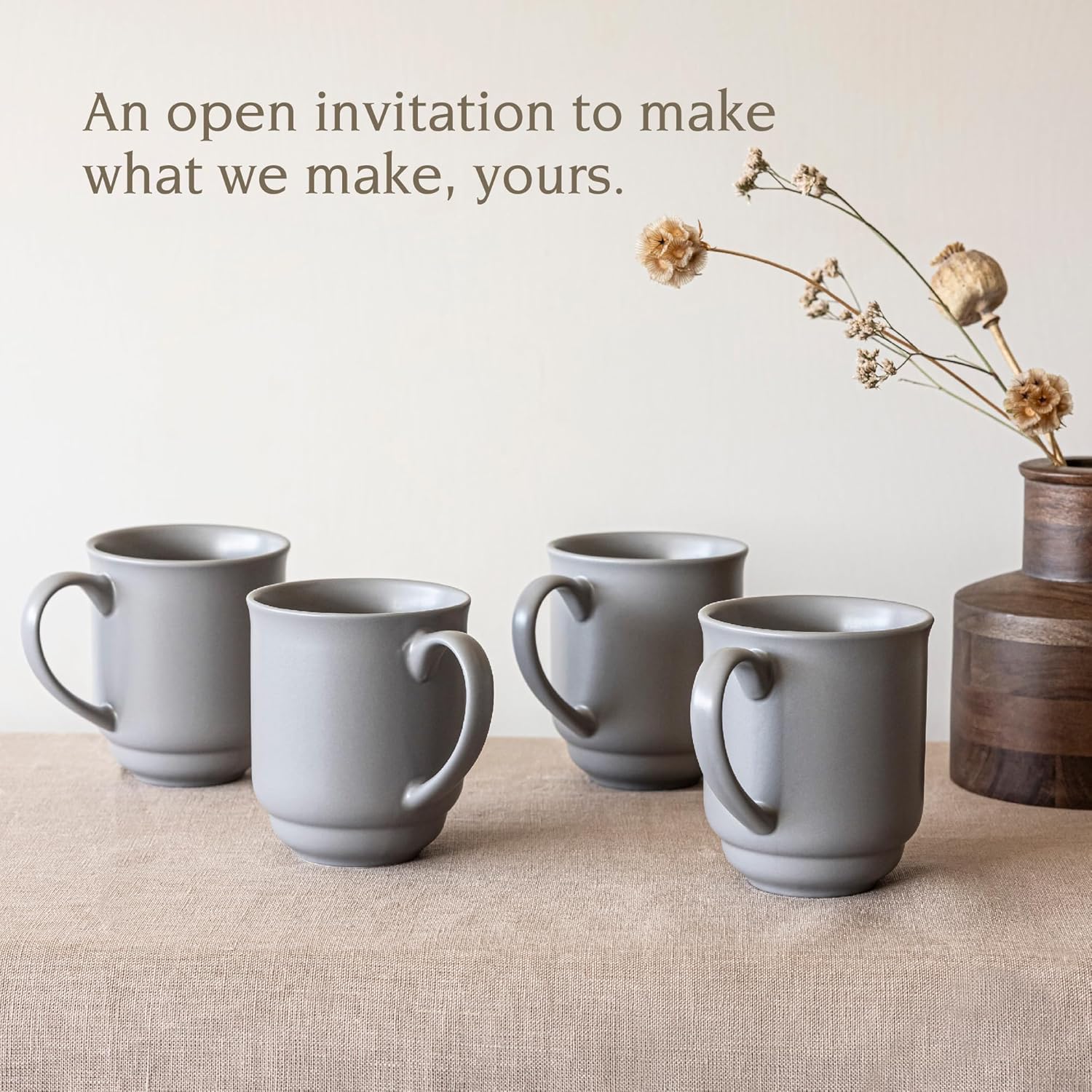 over&back Rim Stoneware Coffee Mugs - 4-Piece Mug Set - Enjoy the Perfect Cup of Coffee, Tea, Latte, and More - Semi-Matte Charcoal - 16oz