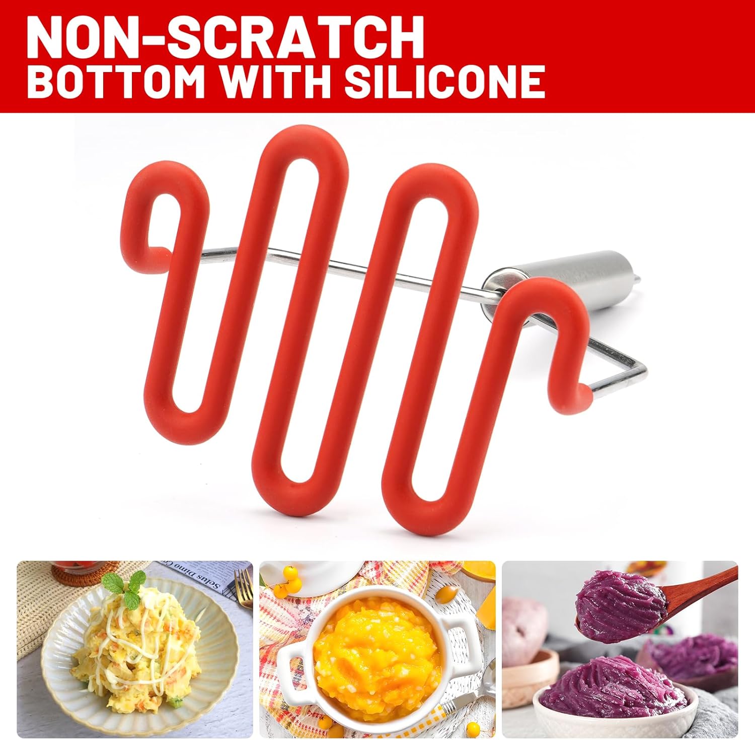 - The non-scratch silicone potato masher is expertly crafted with a premium food-grade silicone head, ensuring a gentle touch on your cookware. Safeguard your expensive cookware from unsightly scratches, preserving their appearance and functionality for years to come,without the risk of damaging your kitchen essentials.