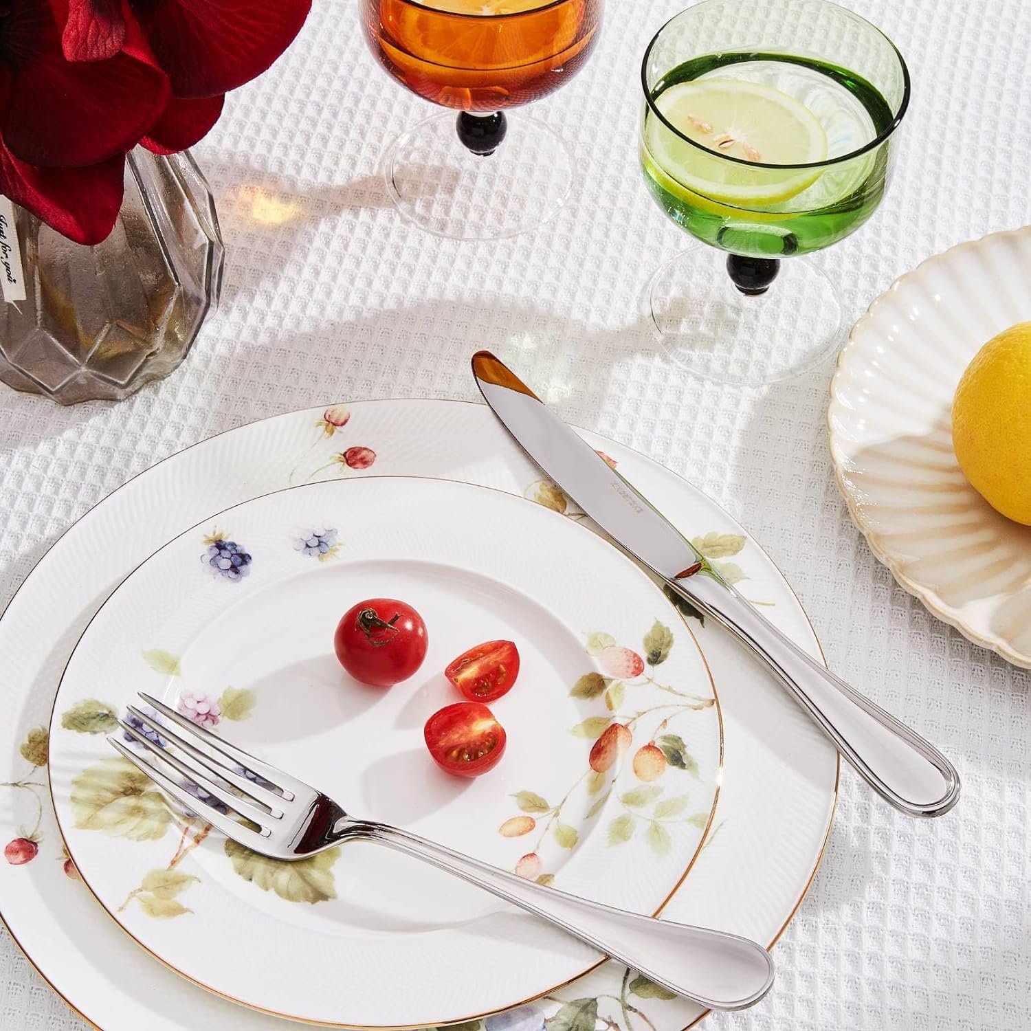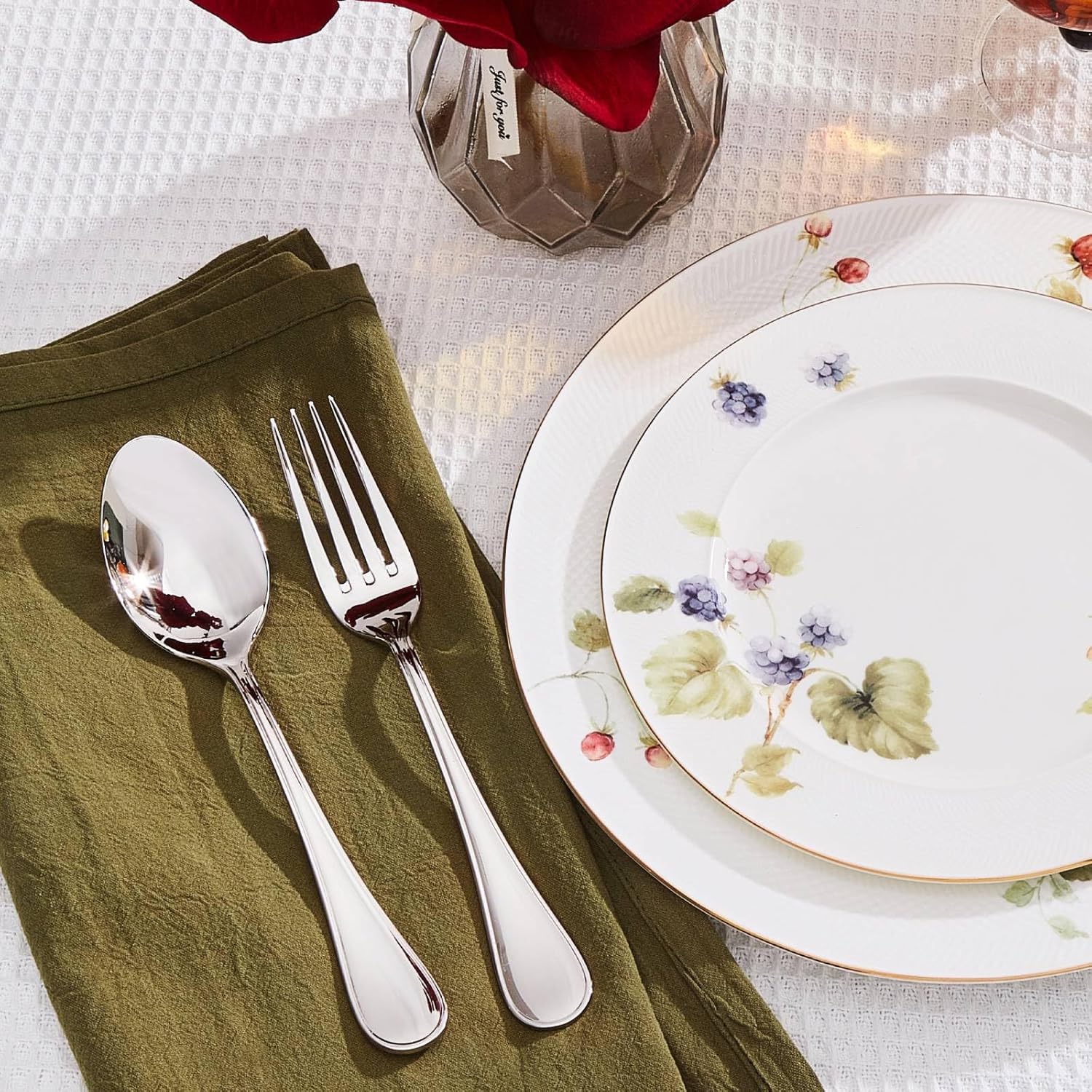 - 18/10 Finest material:The silverware is made of the highest quality 18/10 stainless steel, which has strong anti-corrosion and rust resistance compared to other materials. The solid structure of this material makes the flatware durable and will never bend, providing you with long-lasting service and beauty. Plus, its larger than average size gives it a more substantial feel in your hand