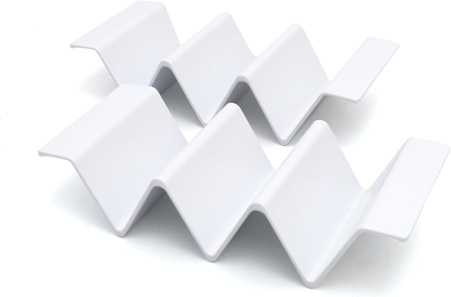 - Sleek & Simple Aesthetic: Crafted in a glossy pure white finish with a sturdy zigzag structure, these taco holders securely cradle up to 3 soft or hard shell tacos with minimal mess, making them perfect for mess-free serving and dining.