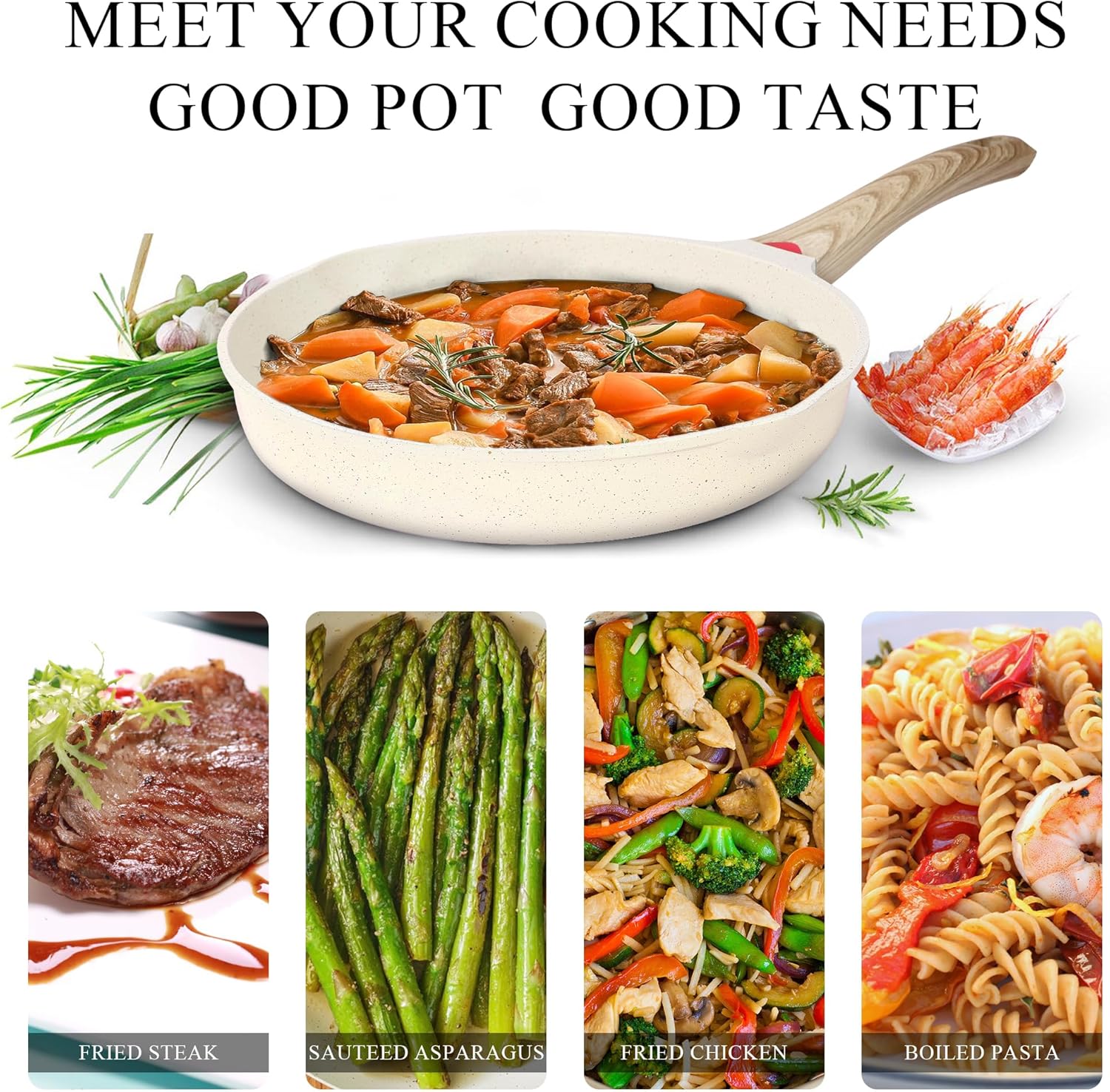 Vinchef Nonstick Frying Pan Anti Scratch,11 Inch Skillet Cast Aluminum Cookware, Induction Compatible White