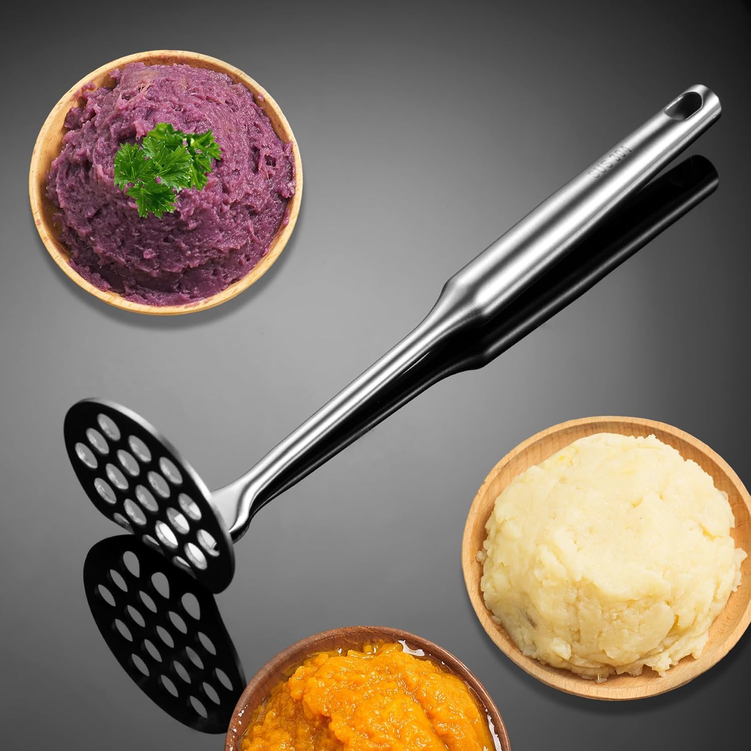 - VERSATILE MASHER: It's called a potato masher, but its utility extends far beyond that. This stainless steel masher can crush beans, eggs, and any fruits or vegetables you desire, such as squash, berries, and more.