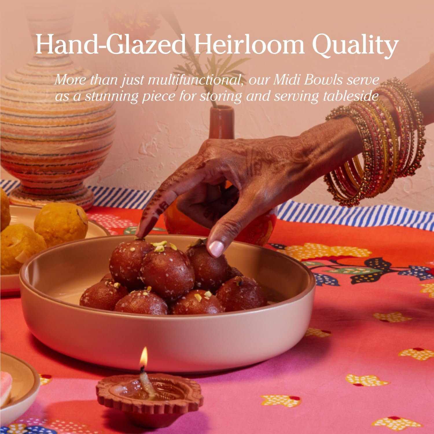 - Caution with Heat: As with any ceramic ware, the Midi Bowls get hot in the microwave and oven. Always use oven mitts and exercise caution when handling.