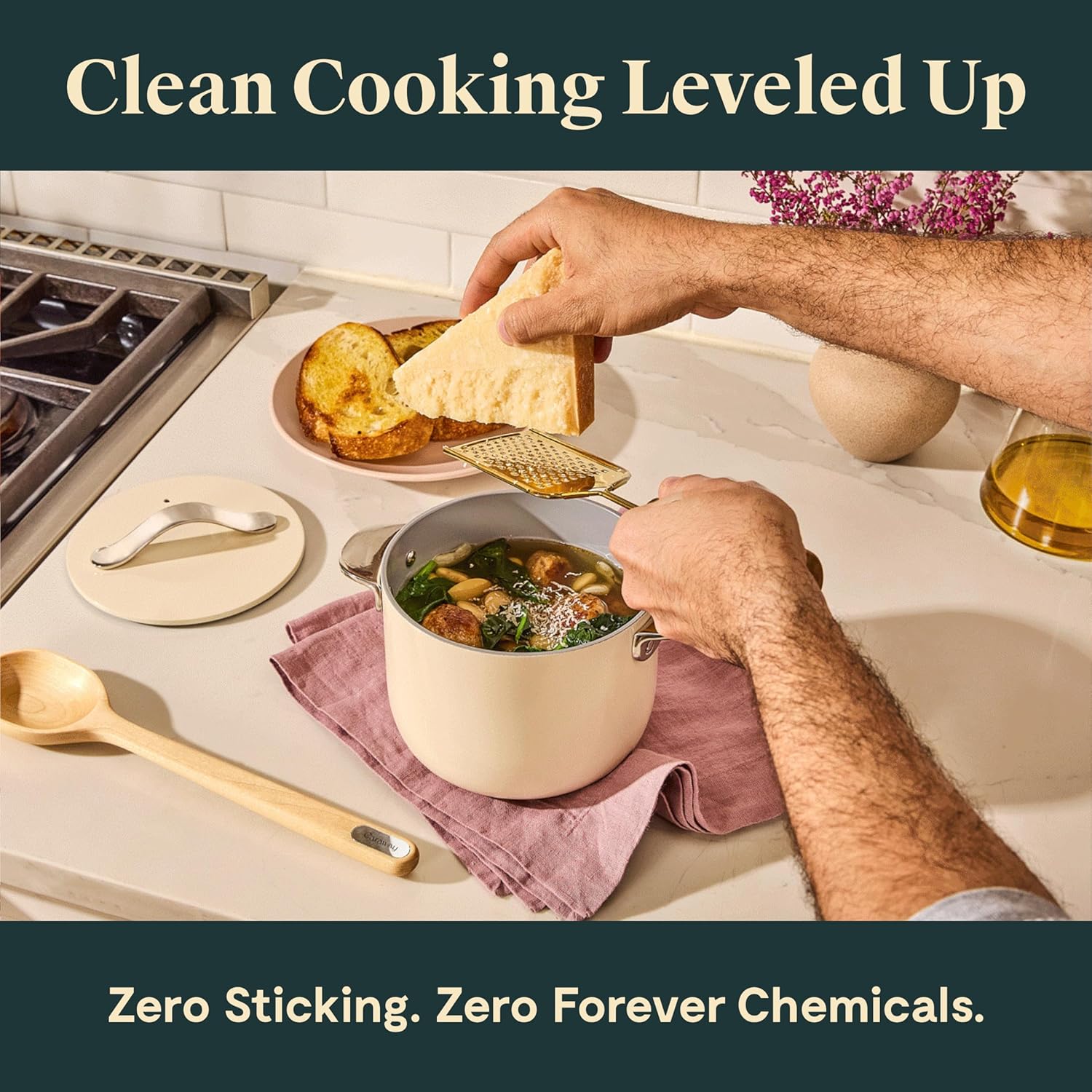 Caraway Petite Cooker - 2 Qt Ceramic Coated Pot - Free From Forever Chemicals - Perfect for Rice, Grains, or Sauces - Perracotta