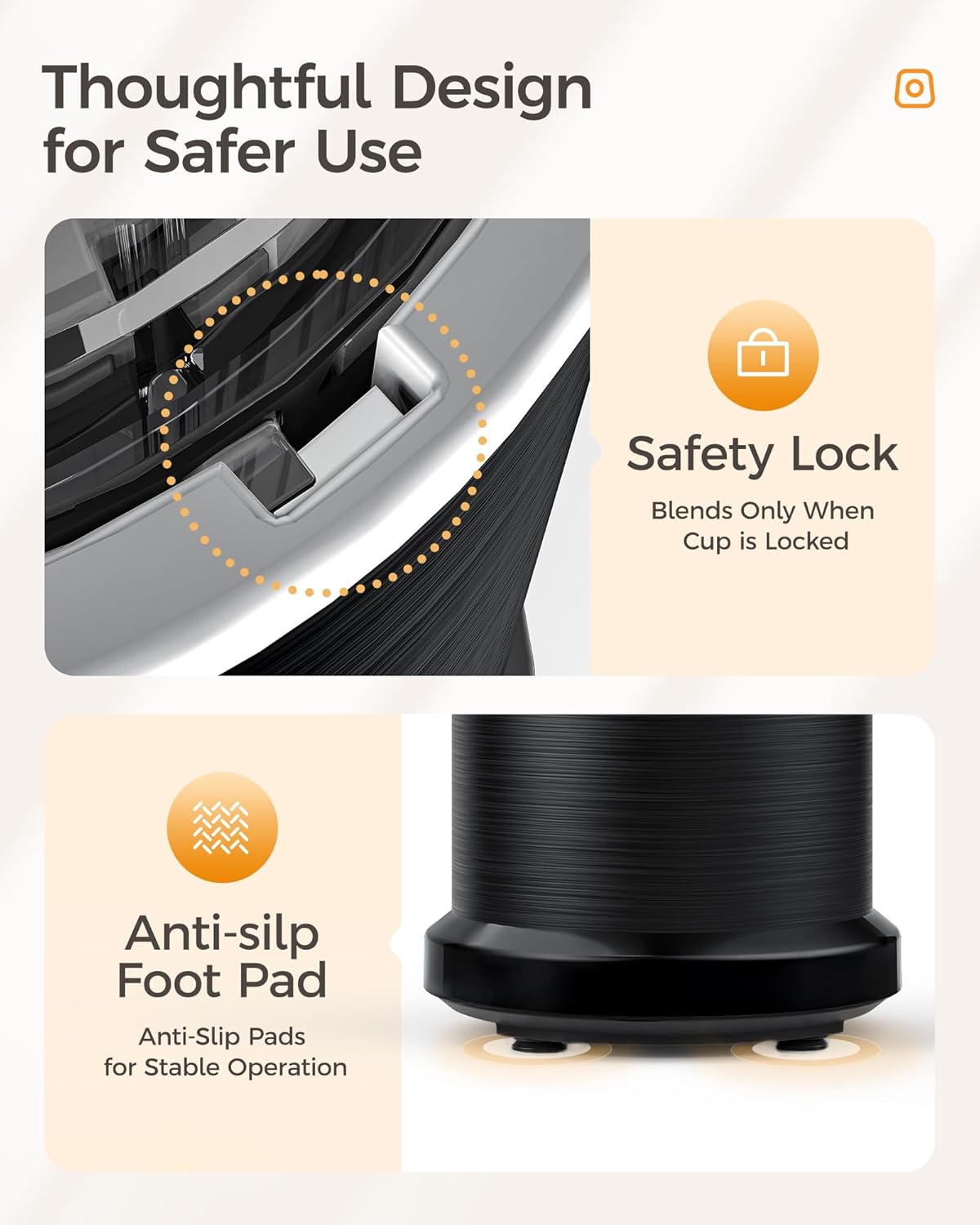 - BPA-Free & Durable To-Go Cups – Sip safely and confidently with our personal blender for shakes and smoothies, featuring BPA-free Tritan cups that are shatter-resistant and built to last. These premium-quality cups keep your drinks fresh and safe, from morning smoothies to post-workout shakes.