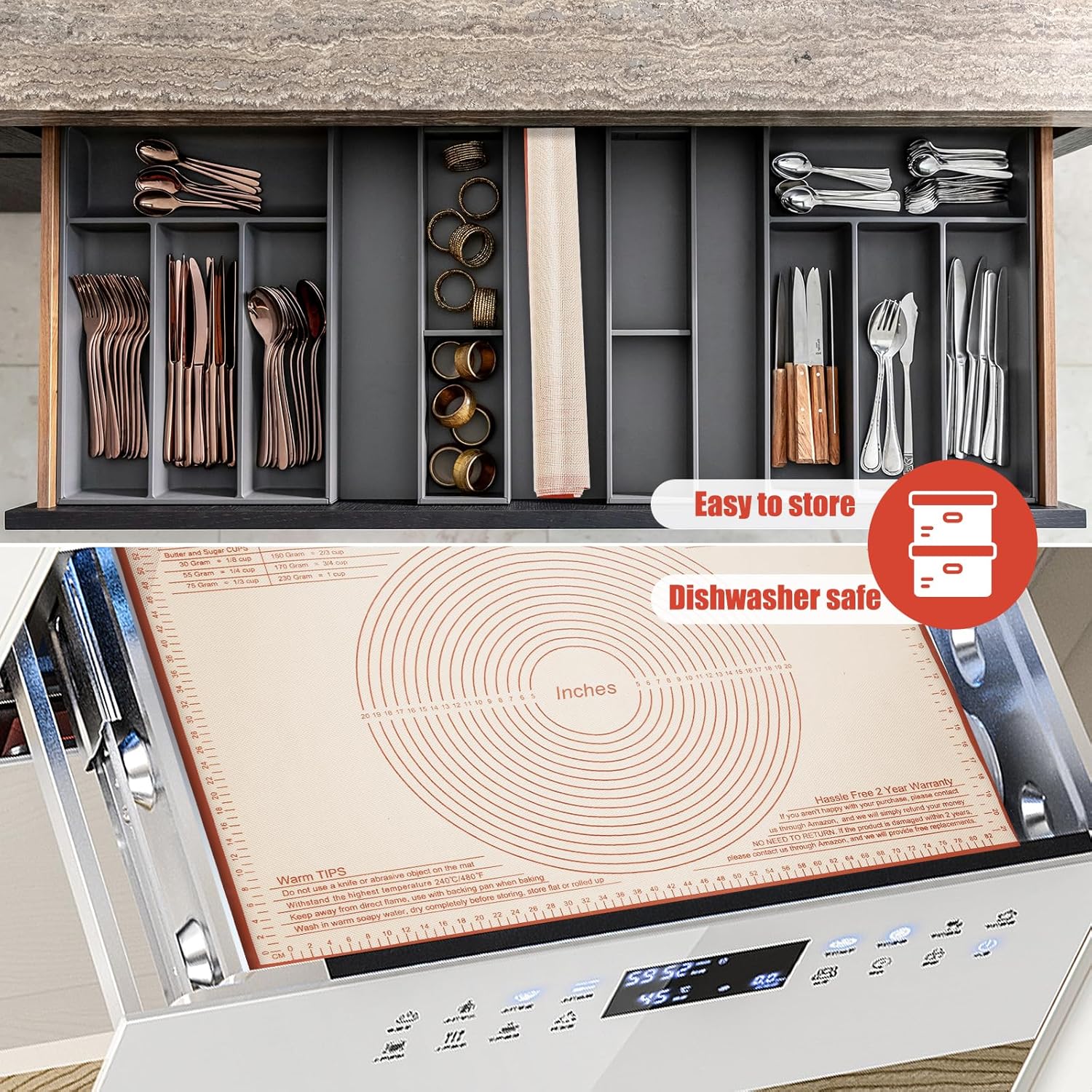 - 【Easy to Clean and Store】: As the excellent nonstick surface design, our pastry mats are super easy to clean and dishwasher safe. Just rinsed it by warm soapy water and let air dried. Stored it by fold or roll up, it’s great to save space. A must-have accessory for any baking.