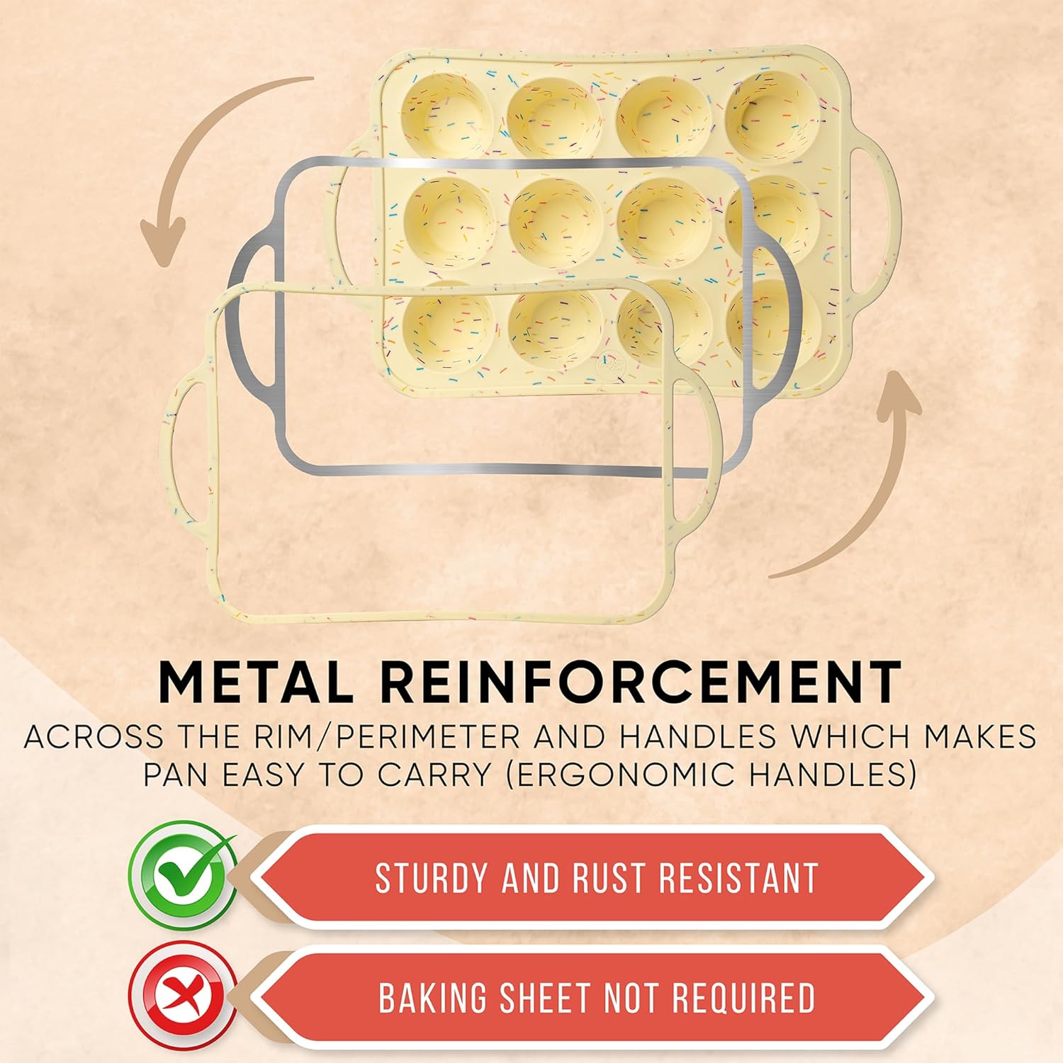 - STURDY YET FLEXIBLE FOR EFFORTLESS HANDLING – Unlike flimsy metal pans, this cupcake pan offers excellent stability with ergonomic grip and reinforced edges. Whether you're using it as a cup cake pans for baking, silicone cupcake pan, or muffin pan, it’s easy to carry—no spills guaranteed.