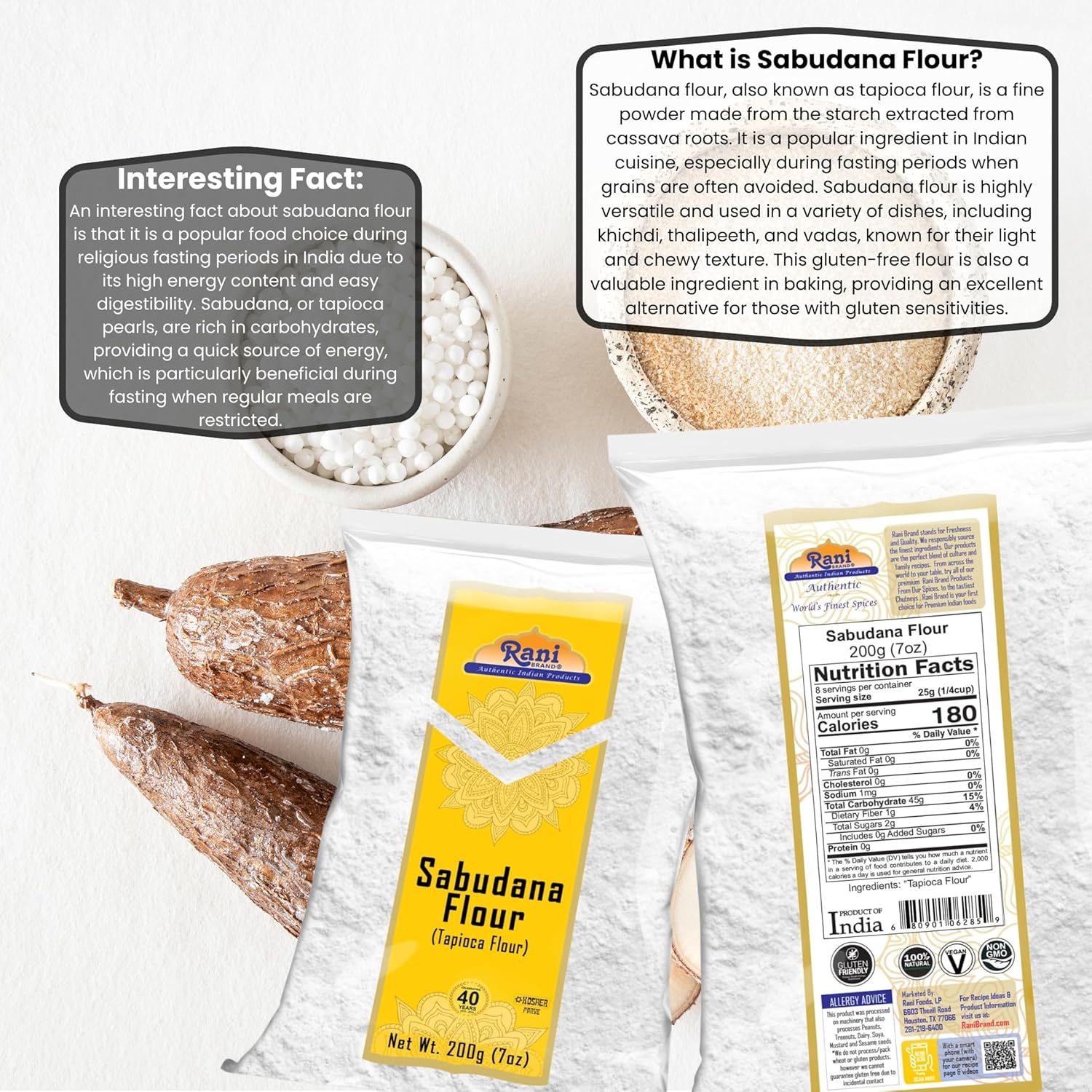 Rani Sabudana Flour (Tapioca/Sago Flour) 7oz (200g) ~ All Natural | Vegan | Gluten Friendly | NON-GMO | Kosher | Indian Origin