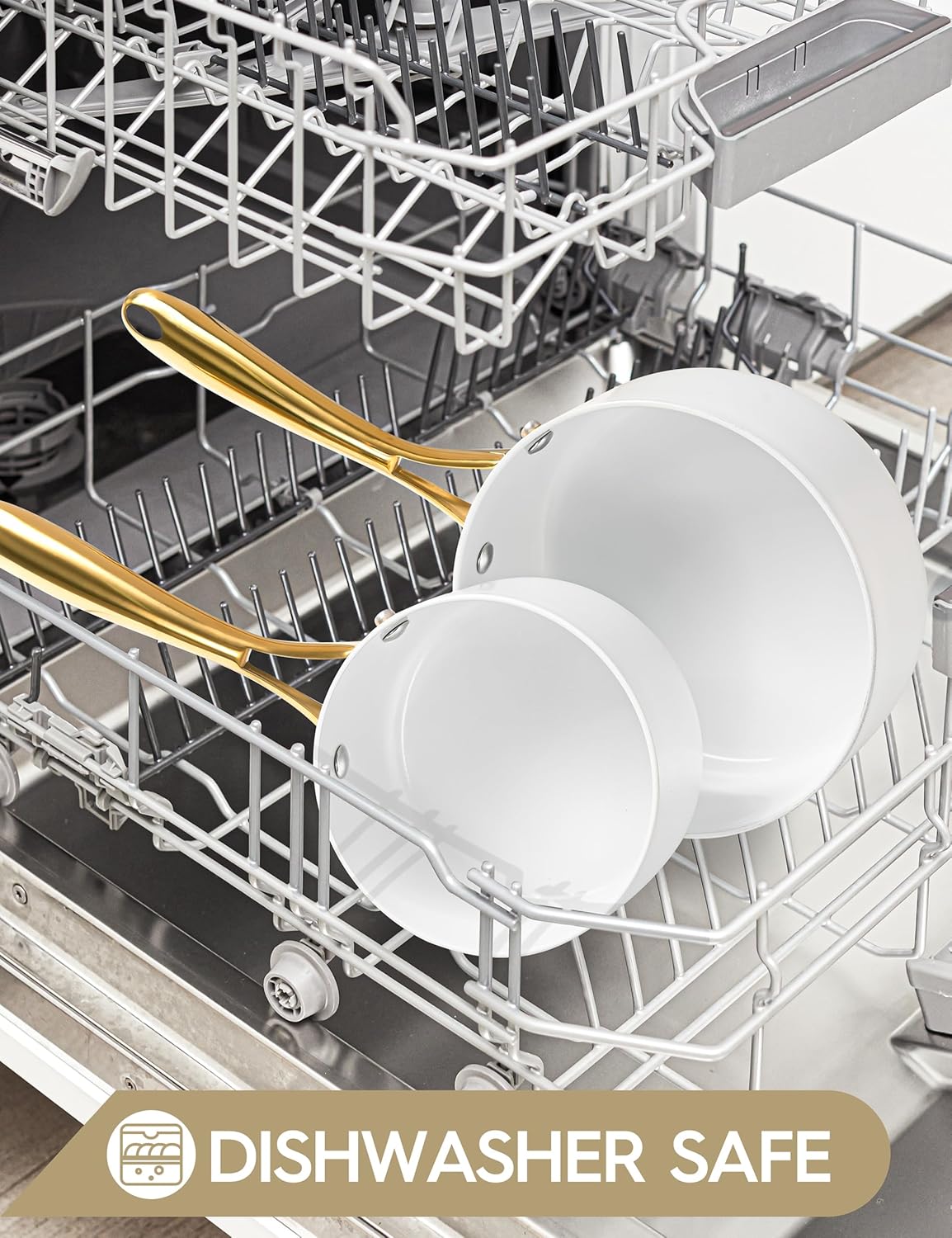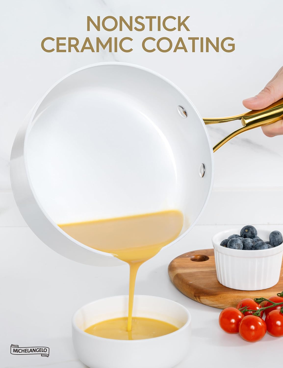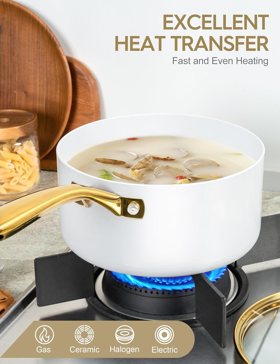 MICHELANGELO 2 Quart Saucepan with Lid, Nonstick Ceramic Sauce Pan with Ergonomic Handle, 2 Qt Small Pot, Oven-Safe, Induction-Compatible, White