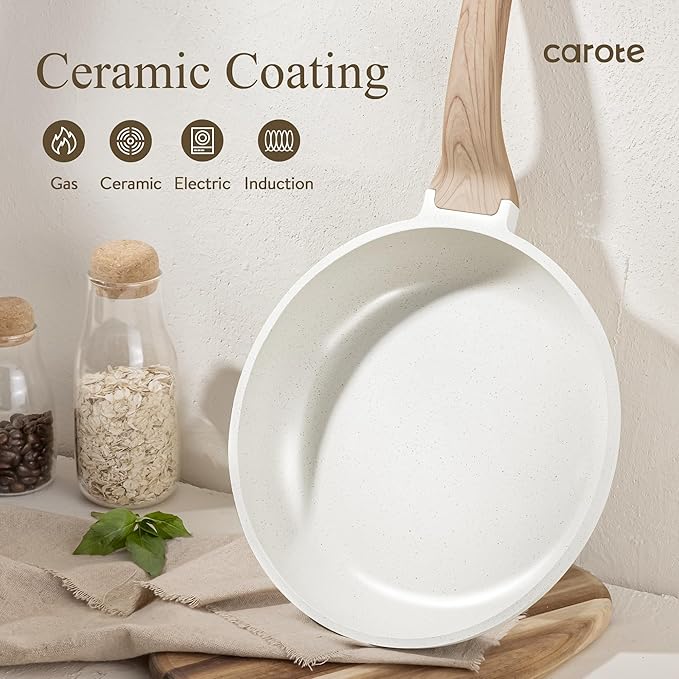 - Ceramic nonstick coating with durability of perfection is free of PFOA, PFOS, and the other harmful chemicals. You can enjoy your cooking on carote cookware safely & easily.