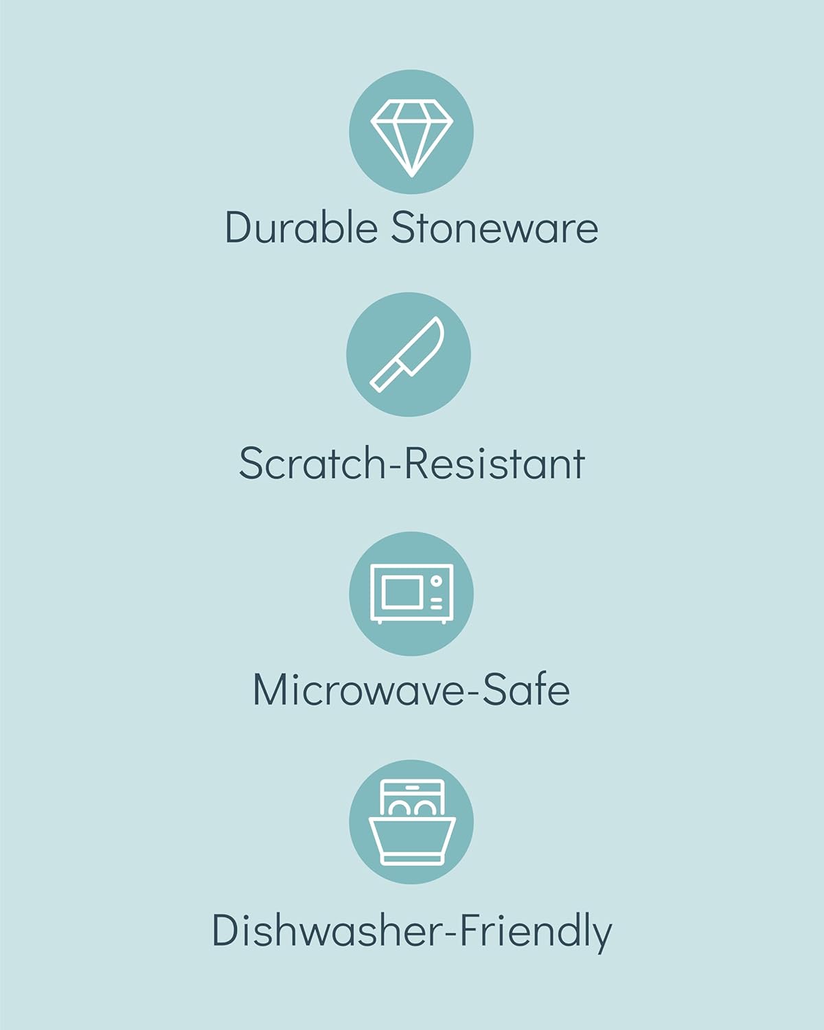 - ✅ DURABLE QUALITY THAT LASTS: Each piece is crafted from high-quality stoneware with a fired, glazed, and scratch-resistant finish, perfect for those who appreciate durability and sophisticated style in their dinnerware.