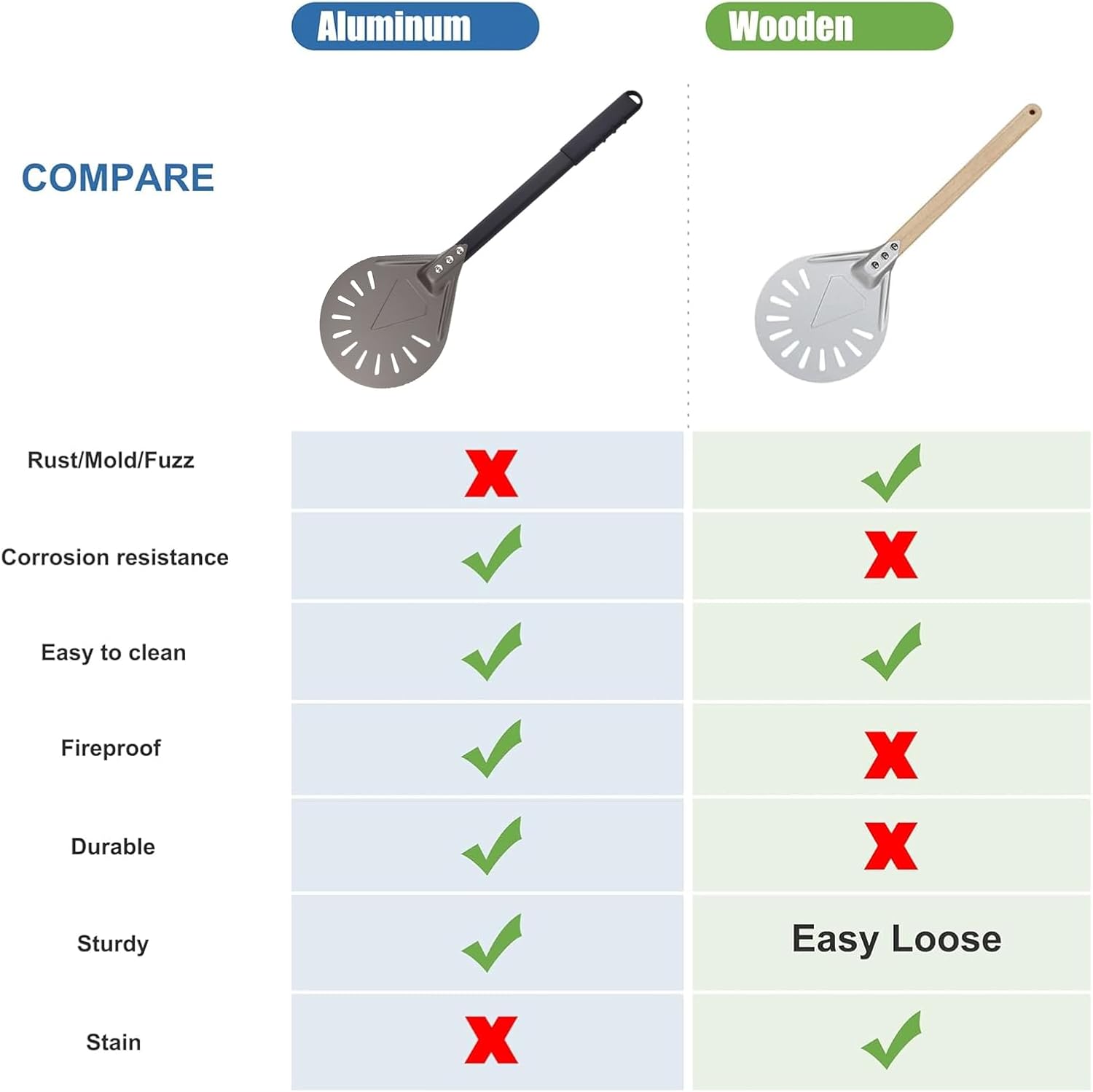 - PREMIUM MATERIAL: This metal pizza peel is made of high-strength and durable anodized aluminum. Not only resistant to high temperatures but also fall ,anti-rust. it is lightweight for easy handling and cleaning