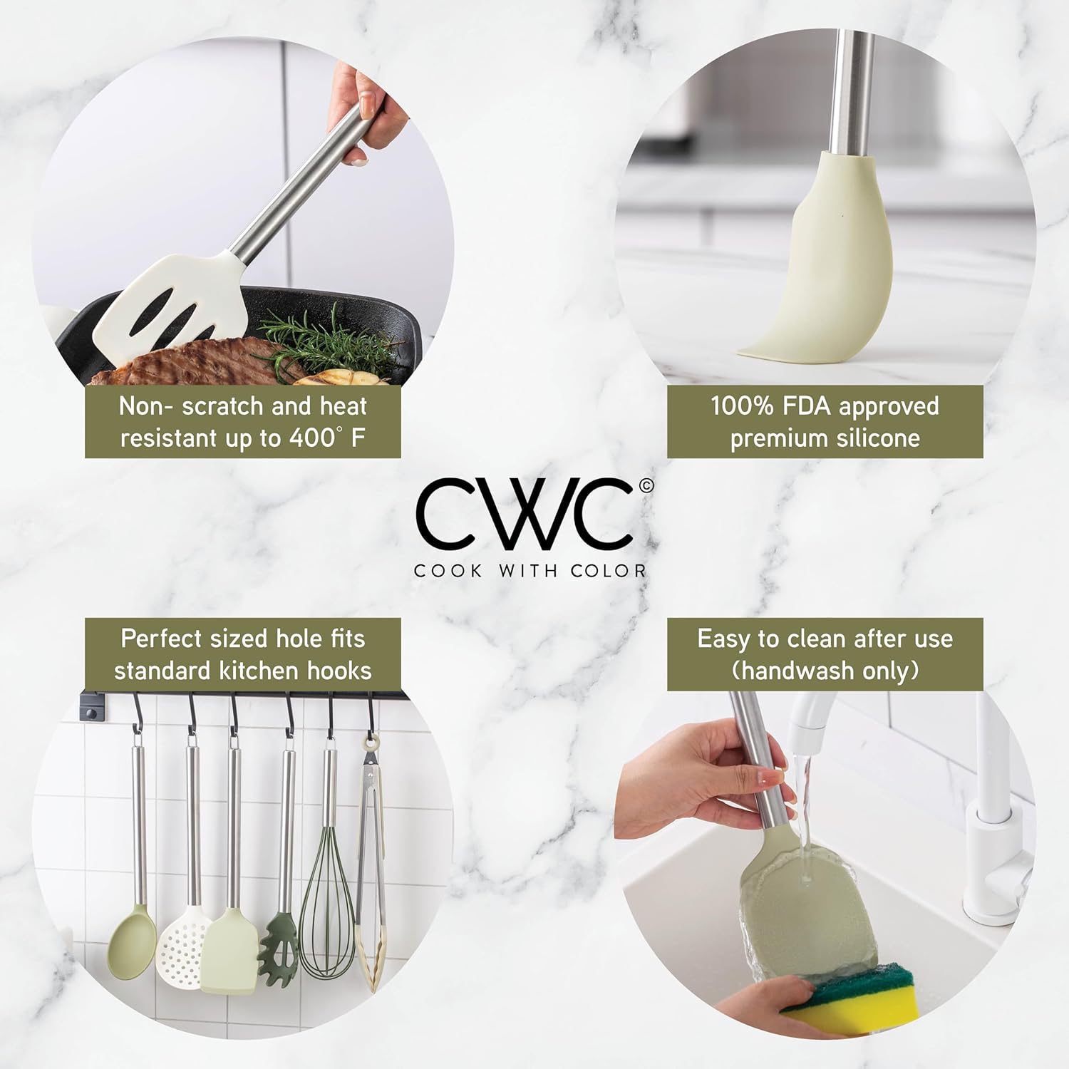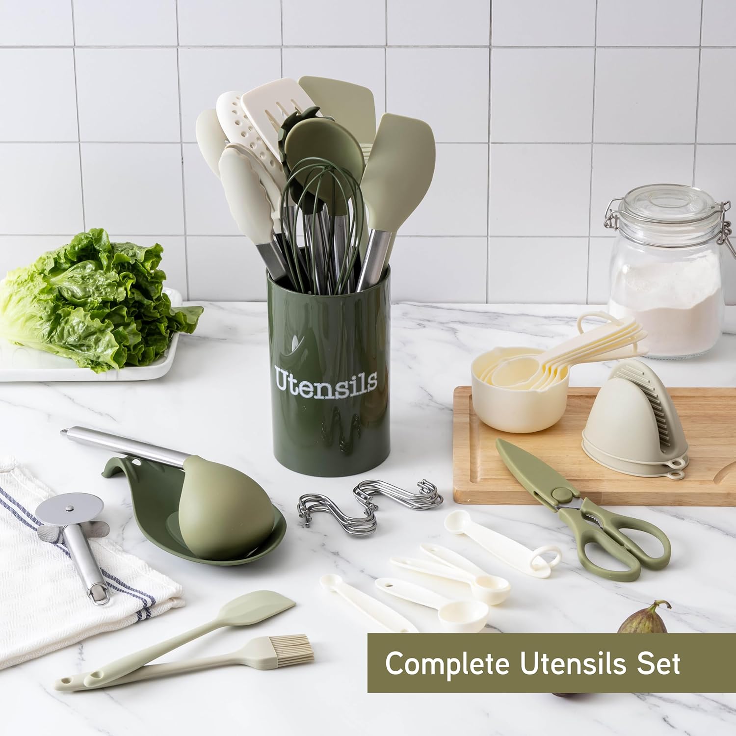 COOK WITH COLOR Silicone Cooking Utensils, Kitchen Utensil Set, Easy to Clean Silicone Kitchen Utensils, Cooking Utensils for Nonstick Cookware, Kitchen Gadgets Set, 38 Piece, Green
