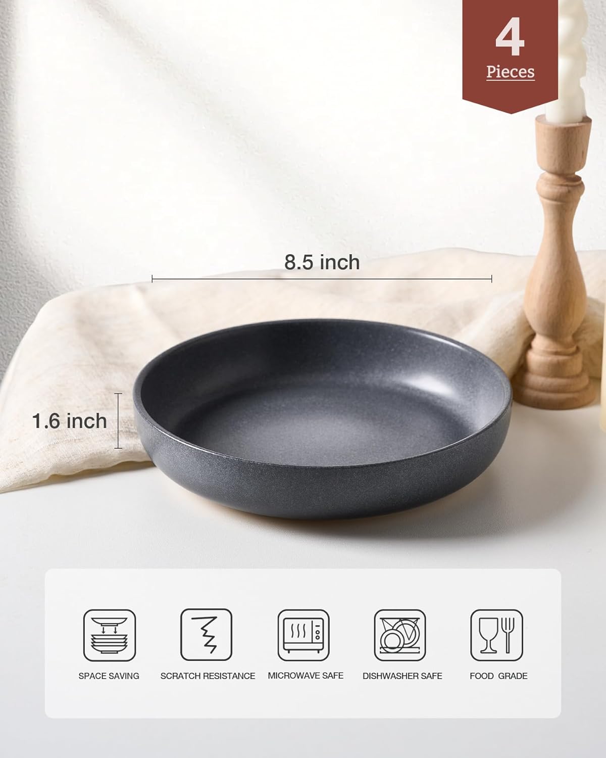 famiware Milkyway Pasta Bowls Set of 4, 8.5" Large Salad Bowls, Double Reactive Glaze, Stackable, Ideal for Housewarming, Festivals, Matte Dark Charcoal