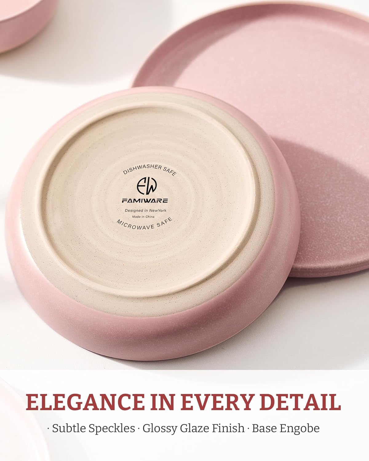 famiware Milkyway Pasta Bowls Set of 4, 8.5" Large Salad Bowls, Double Reactive Glaze, Sturdy & Stackable, Ideal for Housewarming, Festivals, Light Pink