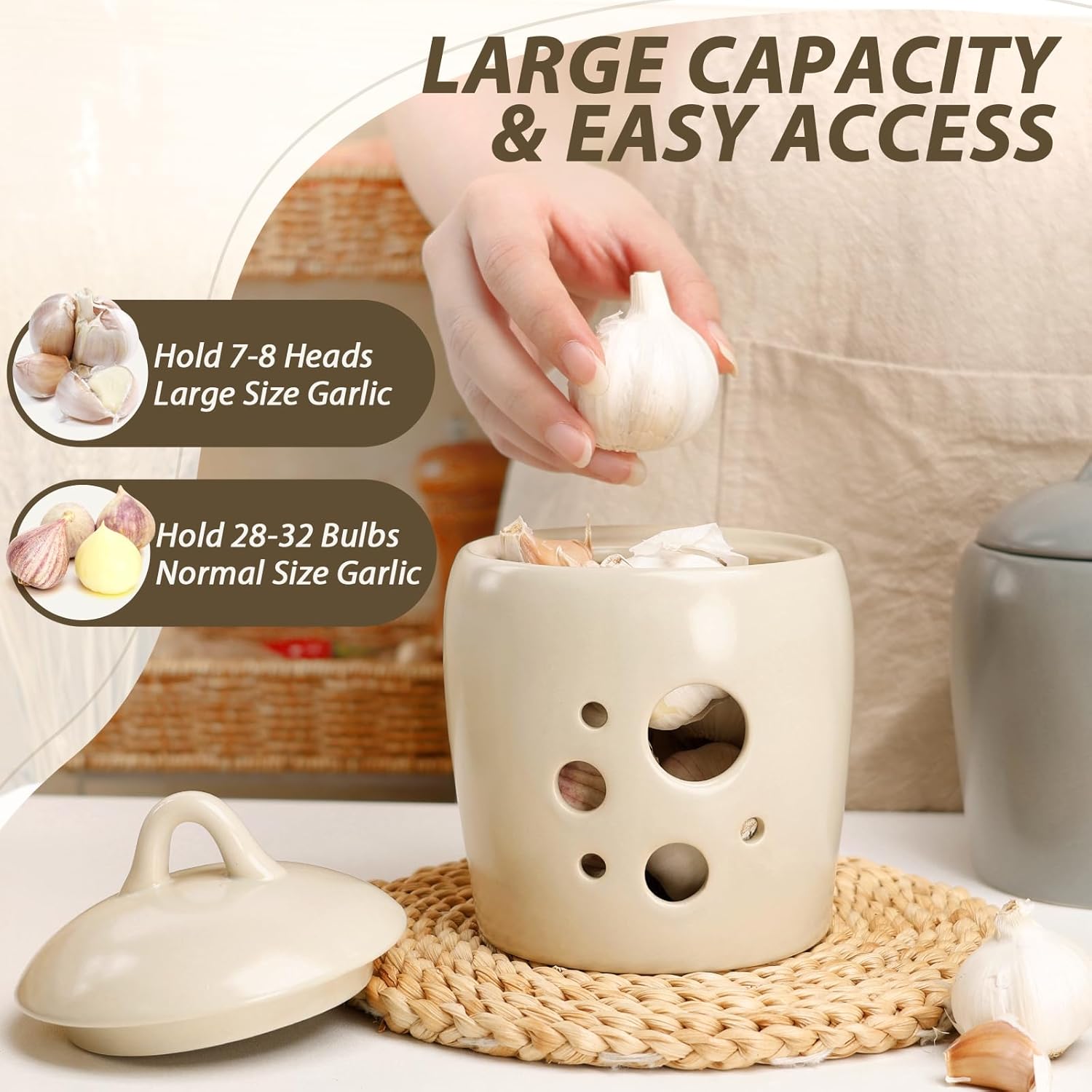 - Elegant Grey Ceramic Design: Made from premium gray ceramic, this garlic container storage boasts a sleek and elegant look that complements any kitchen décor, serving as both a functional and decorative piece