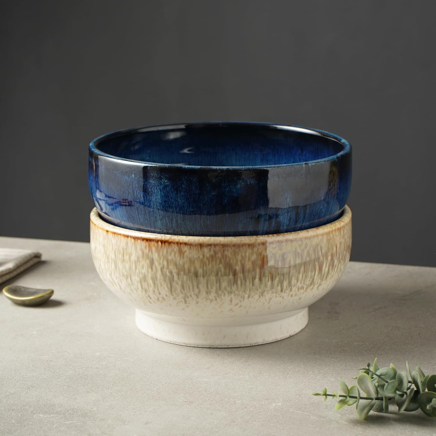 - Eye-catching design:The footed design overlaid with a chic reactive glaze gives the traditional ceramic salad bowl a fresh new look that's a real eye-catcher.