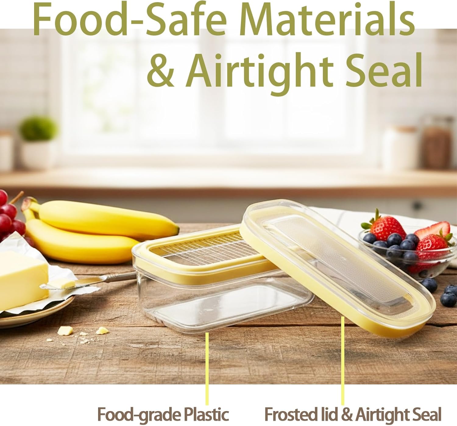 - Versatile Kitchen Helper Beyond Butter:More than just a butter dish for refrigerator, it's a multi-use storage container. Ideal for keeping cream cheese, cheese slices, fruits, herbs, or any small food item sealed and organized. A must-have cute butter dish for any modern kitchen.