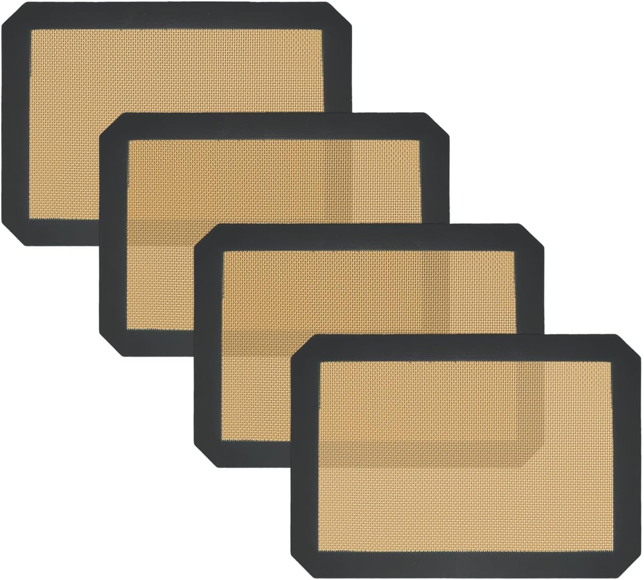 Small Silicone Baking Mats, Set of 4,11-4/5x8-1/4 Inch Quarter Sheet Size, Non Stick, BPA Free, 1/4 Baking Sheet Pan Liner for Cookies, Macaron, Bread, Pastry, Toaster (Grey)