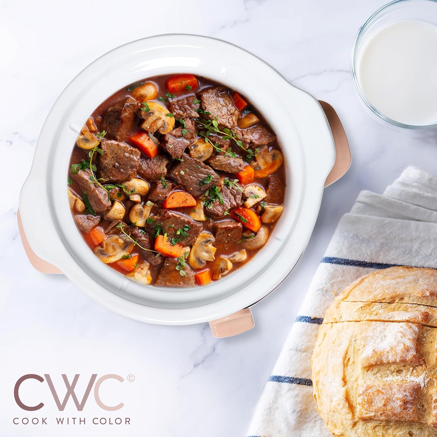- Removable and Dishwasher-Safe Stoneware: The durable stoneware pot and tempered glass lid are both dishwasher-safe, ensuring easy cleanup after every use.