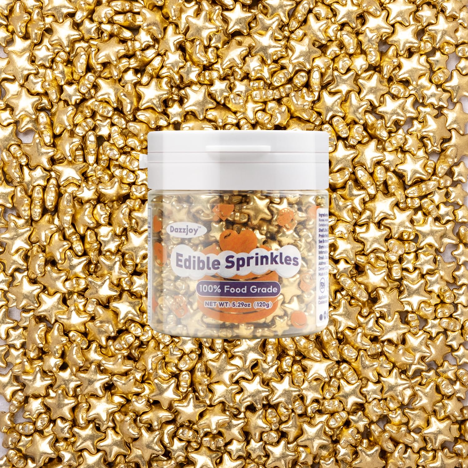Dazzjoy Edible Gold Sprinkles, Star Sugar Candy Sprinkles for Cupcake Decorating, Food Grade, 4.23oz, Mix Size, Cupcake Toppers, Cake Decorations, Wedding Party Supplies