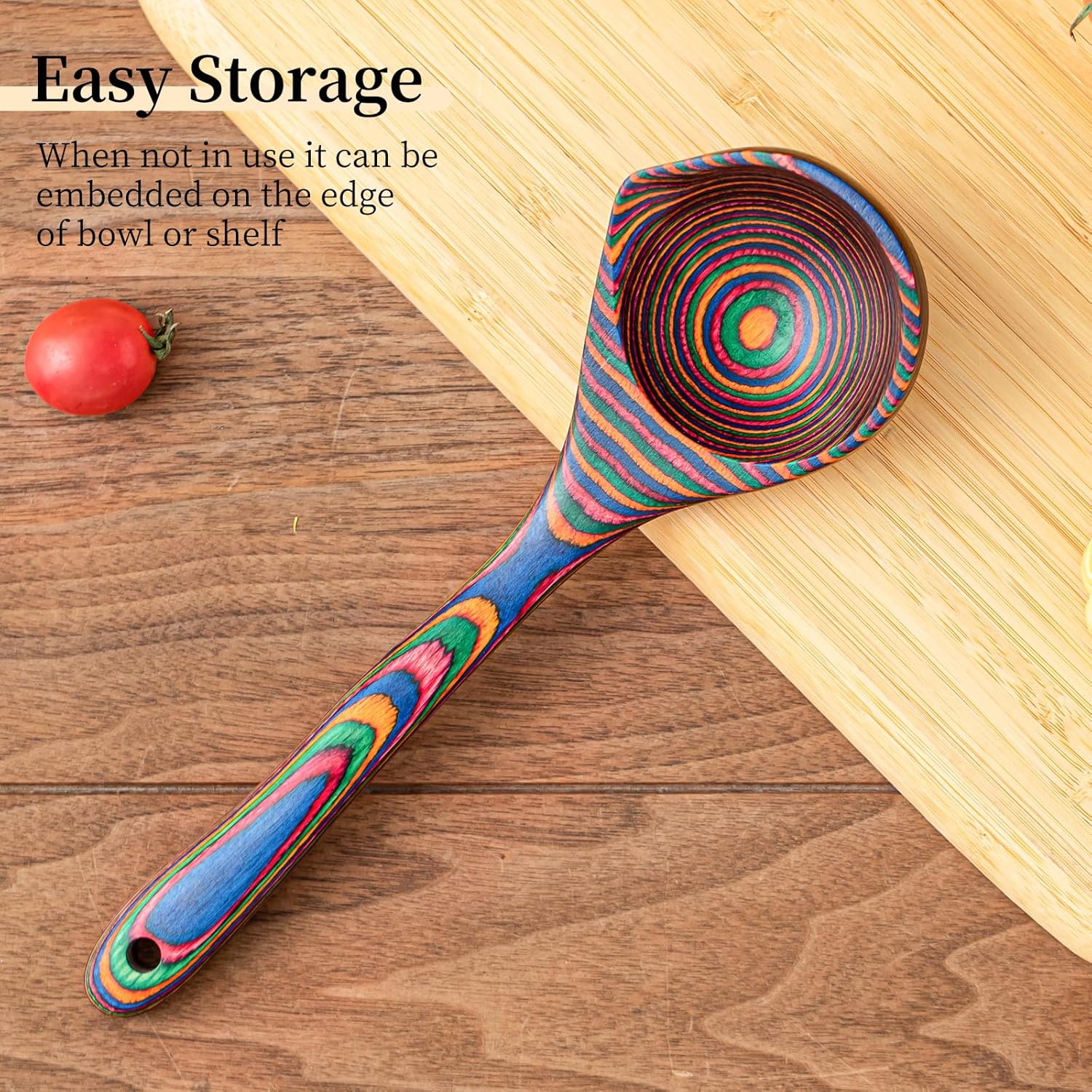 Gudamaye Pakkawood Rainbow Deep Soup Ladle with Spout, 9.6 inch Big Soup Ladle for Cooking