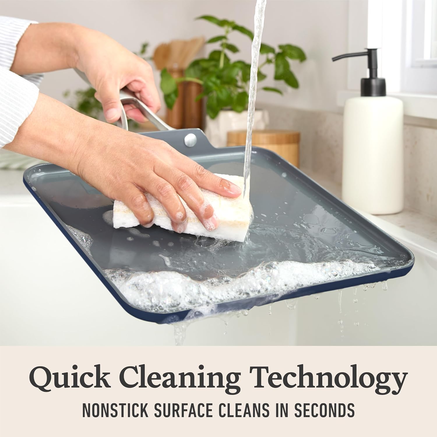 - Metal Utensil-Safe: Cooking from scratch deserves scratch-free cookware, so our ceramic pans have scratch-resistant interiors.