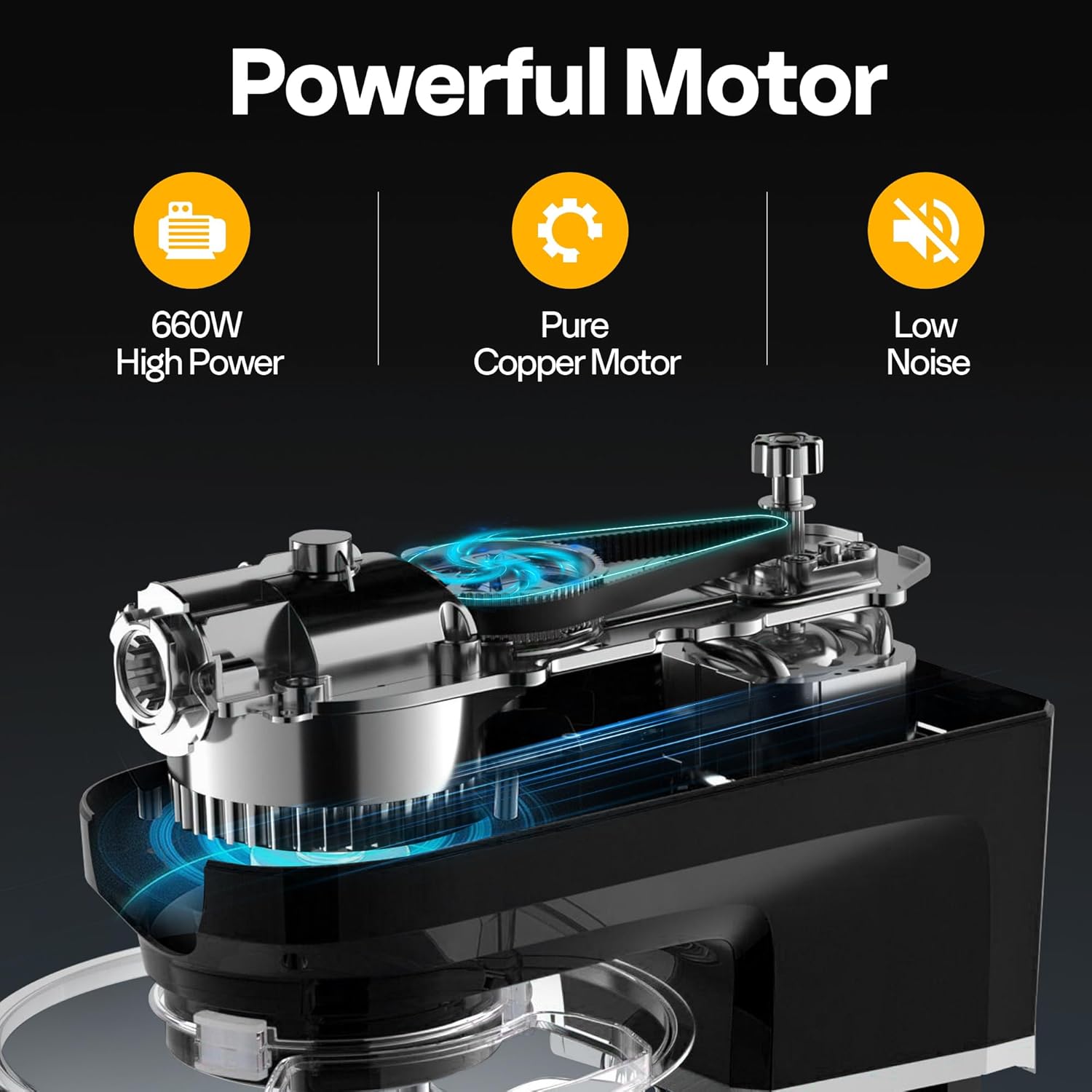- POWERFUL PERFORMANCE: The VIVOHOME stand mixer is equipped with a 660 W pure copper motor that kneads and mixes faster and more thoroughly than human hands, easily handling all your needs; Its 360° planetary mixing and stirring mechanism ensures the attachments come into contact more evenly with ingredients in the bowl
