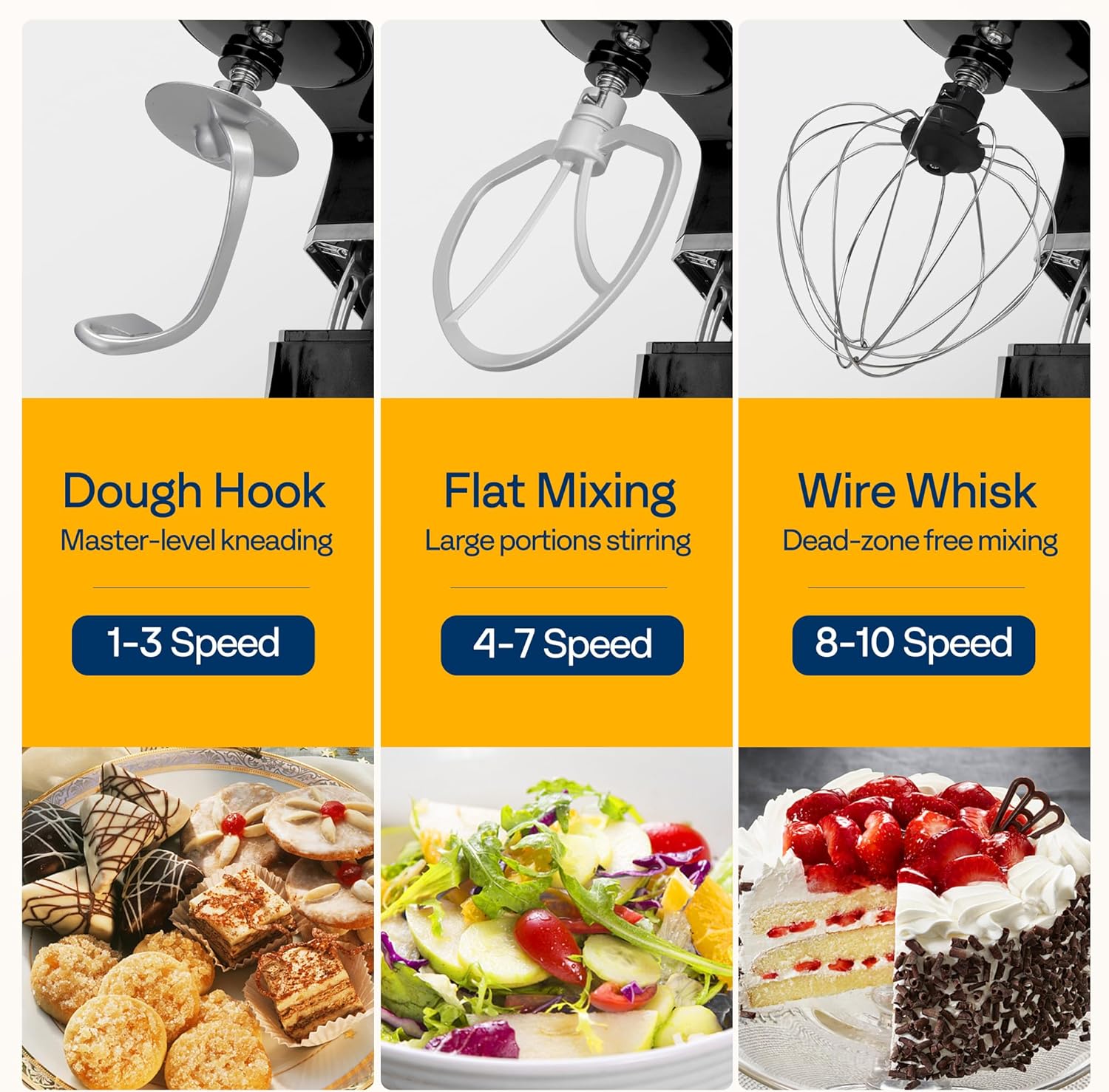 - VARIABLE SPEED: 10+P Speed Control with precise settings offers versatility for preparing various recipes; Lower speeds 1-3 are ideal for mixing and kneading yeast dough, mashing salads, or stirring quickly; Mid-range speeds 4-7 work best for mixing cookie dough or beating egg whites, while higher speeds 8-10 are perfect for fast whipping and making meringues or whipped cream; The pulse function delivers short bursts of power to blend mixtures evenly