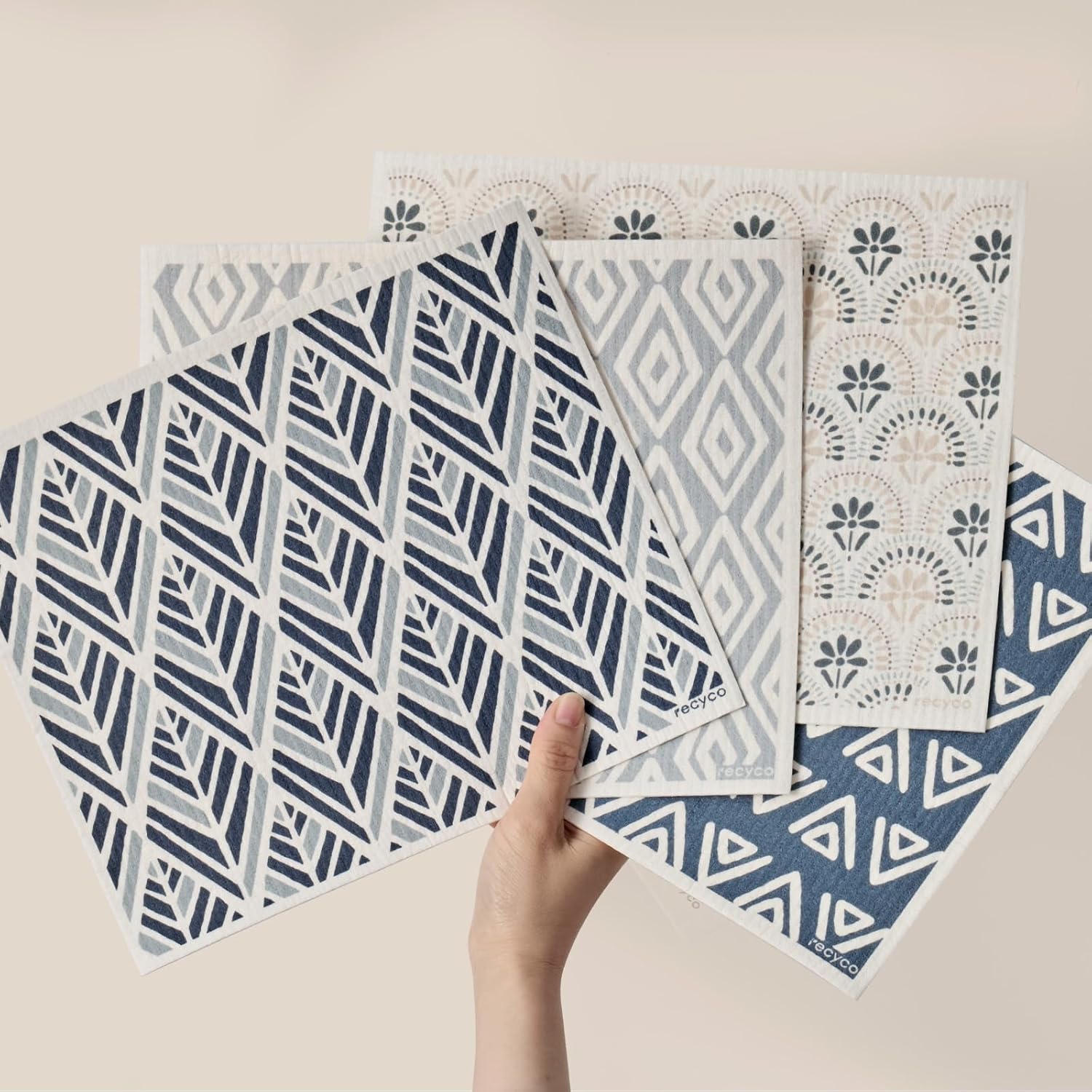 - Unique Patterns & Great Value: Our kitchen towels dish cloths come in 4 pieces value pack with a variety of well-thought patterns & colors for you to choose from. Elevate your cleaning game with great functionality, sustainability & aesthetics today.