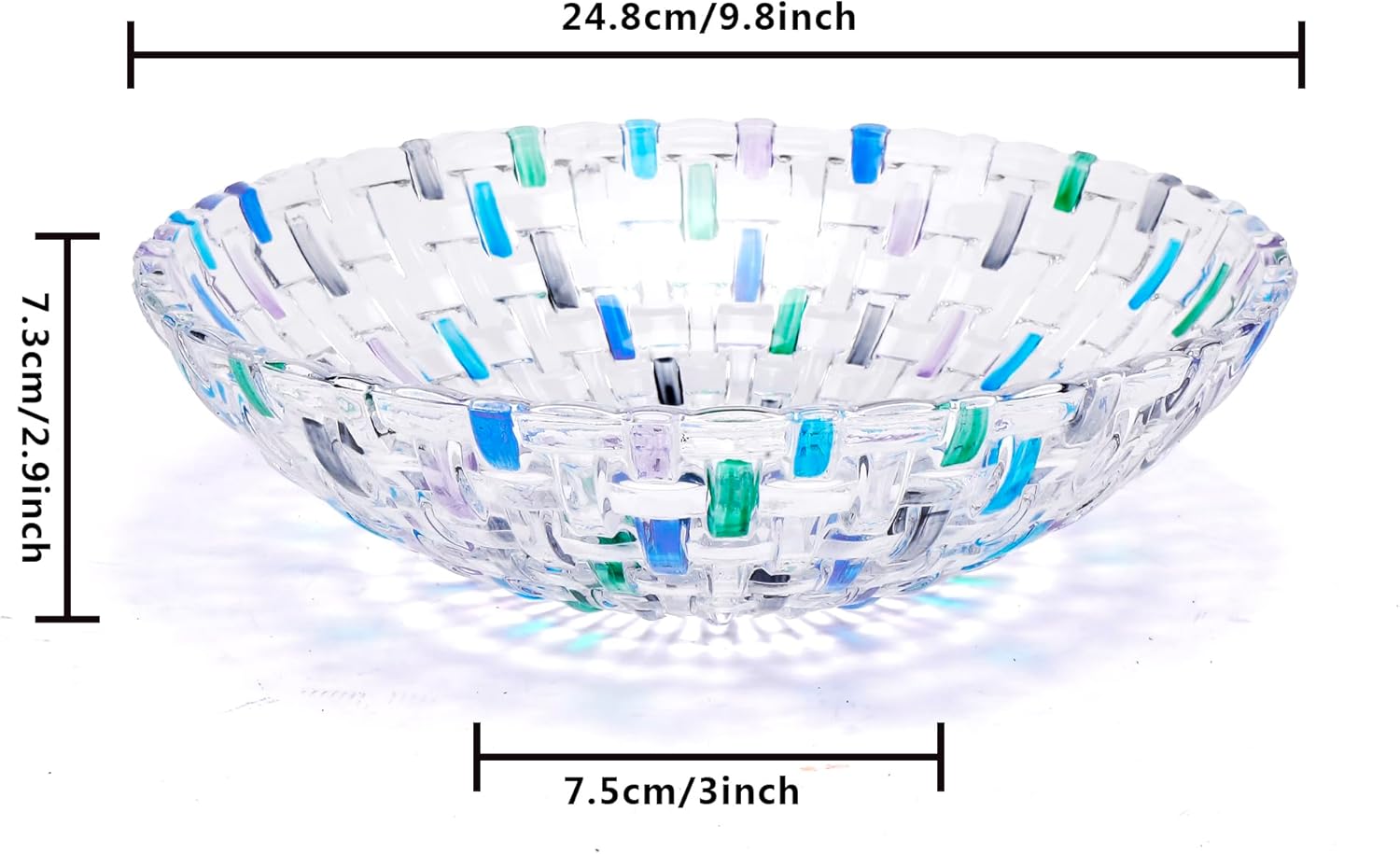 Hand Painted Blue Woven Glass Crystal Salad & Fruit Bowl Decoration,Centerpiece For Home,Office,Wedding Decor, Fruit, Snack, Dessert, Server (Blue)