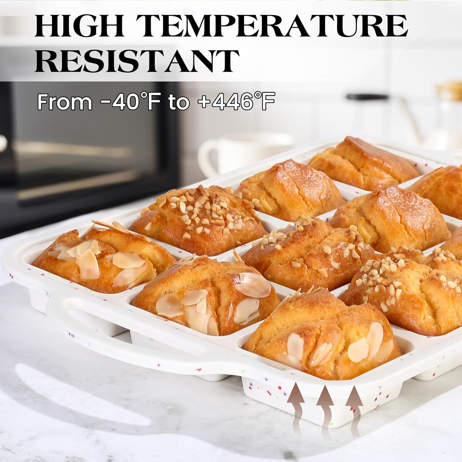 2 Pcs Brownie Pan With Dividers Silicone Nonstick Mini Individual 12 Cup Square Muffin Cupcake Pans with Metal Frame(Cream)