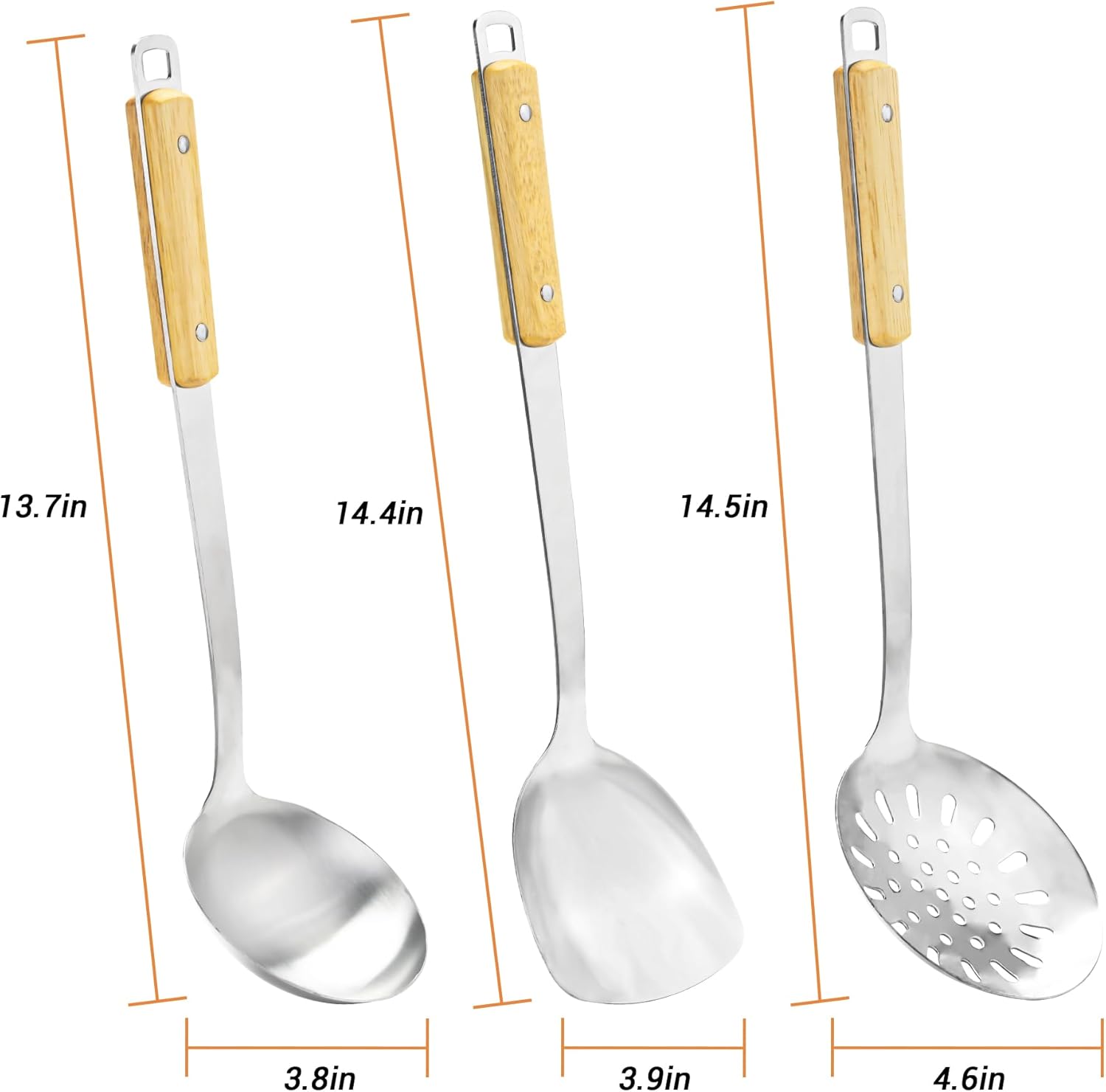 FJNATINH Wok Spatula and Ladle Skimmer Spoon - Stainless Steel Cooking Utensils Set of 3,Kitchen Wok Utensils Set